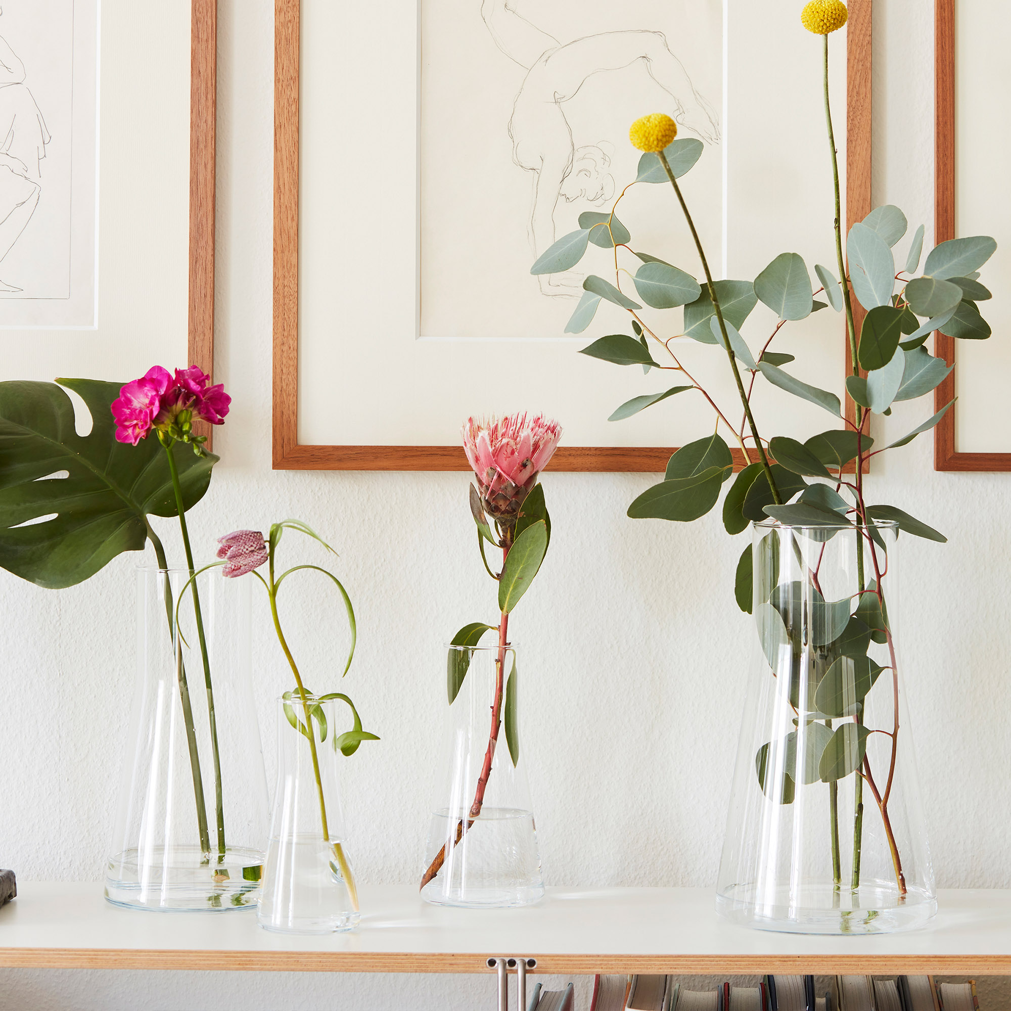 As the saying goes, "Let flowers do the talking!". And there are more than enough ways to give them away. So why not give away the beautiful cut flowers in a matching vase? The vase "Thirst quencher" impresses with a clever shape with a wide bottom and narrow neck.