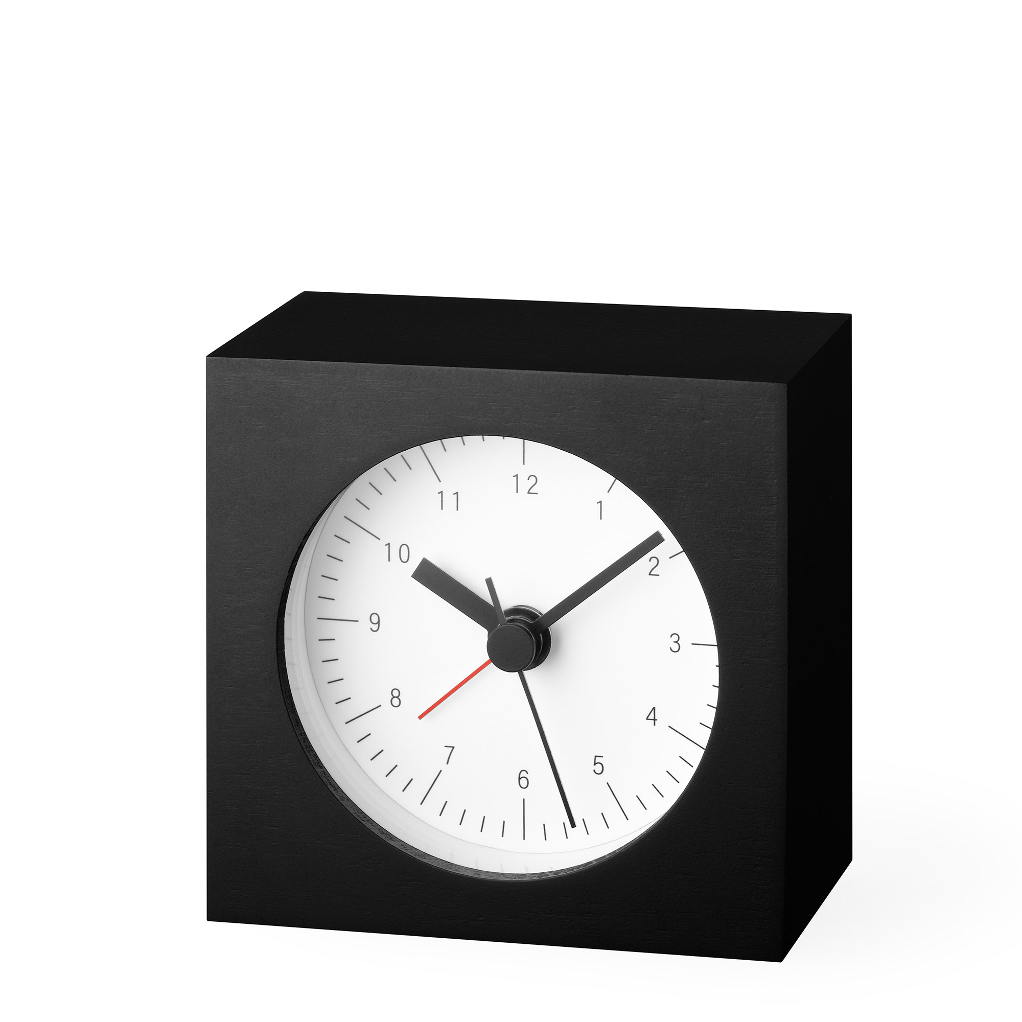 Die präzise gestalteten Zahlen und Linien sind auf das Wesentliche reduziert, wodurch sich der Wecker dezent in jede Umgebung einfügt.