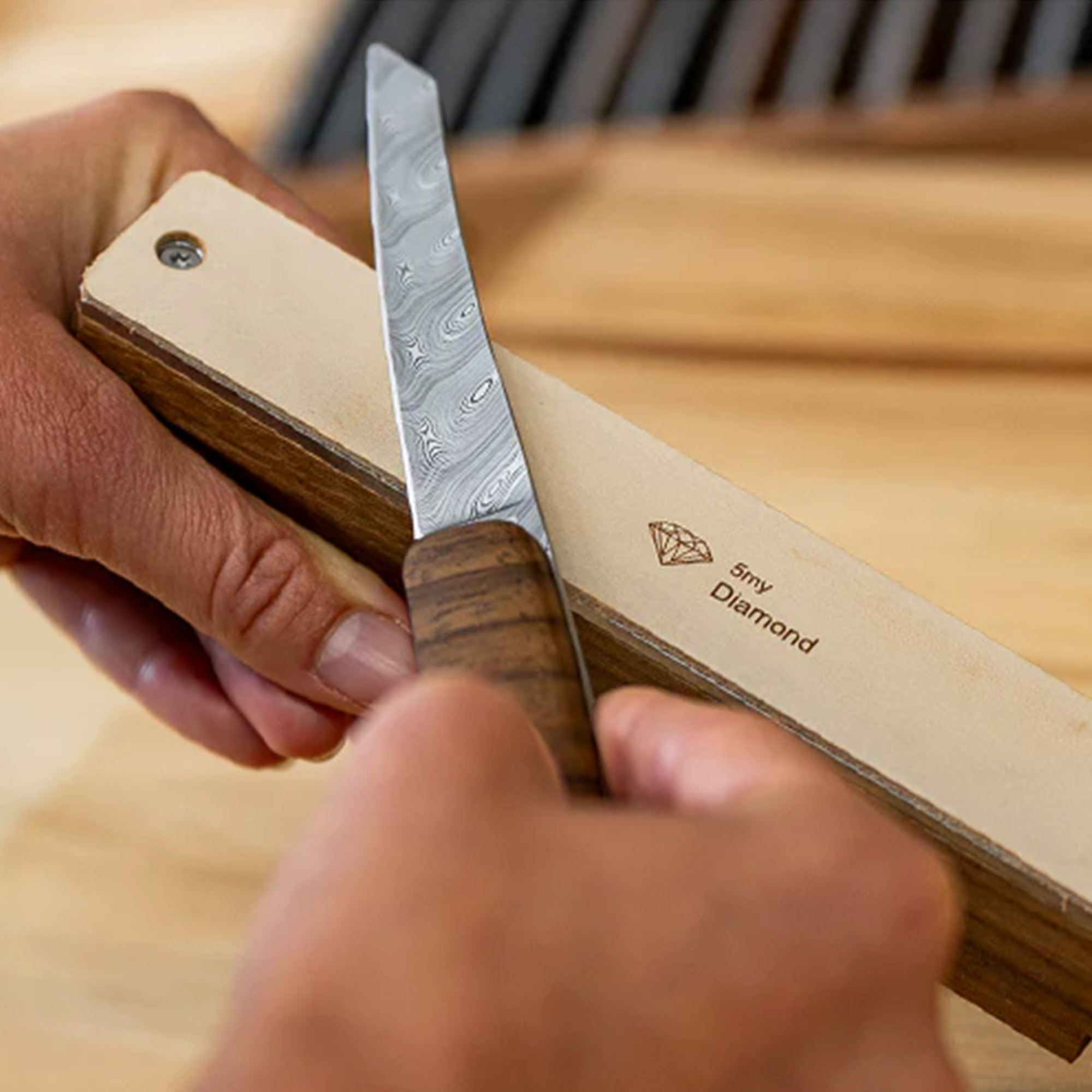 L'appareil d'affûtage de précision contient 1 unité d'affûtage de rechange intégrée et dispose sur sa face inférieure d'un cuir de 5my infiltré de diamant, permettant de retirer finement la lame. Cela permet d'obtenir un tranchant de lame de rasoir aussi bien pour les couteaux de poche que pour les couteaux de cuisine haut de gamme.