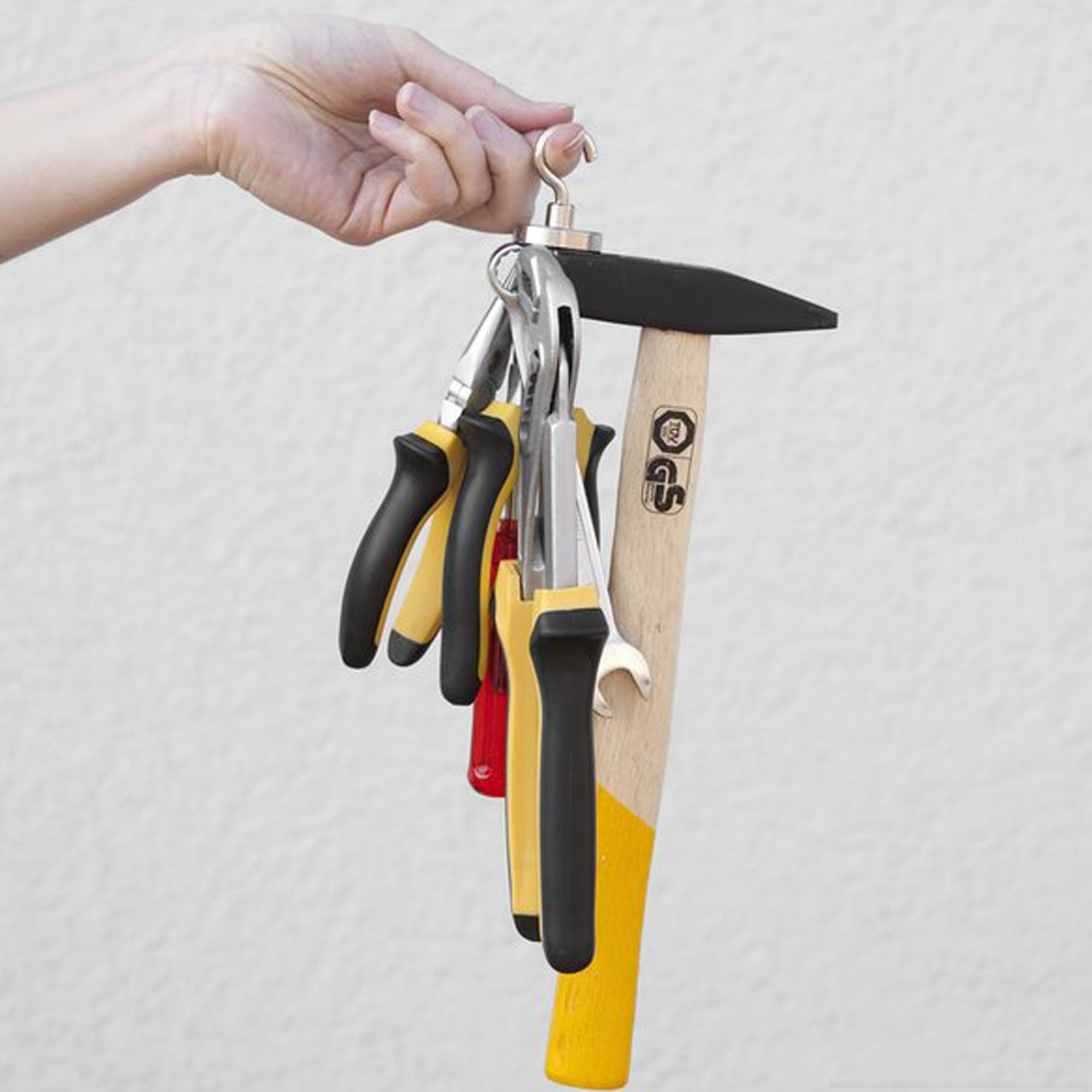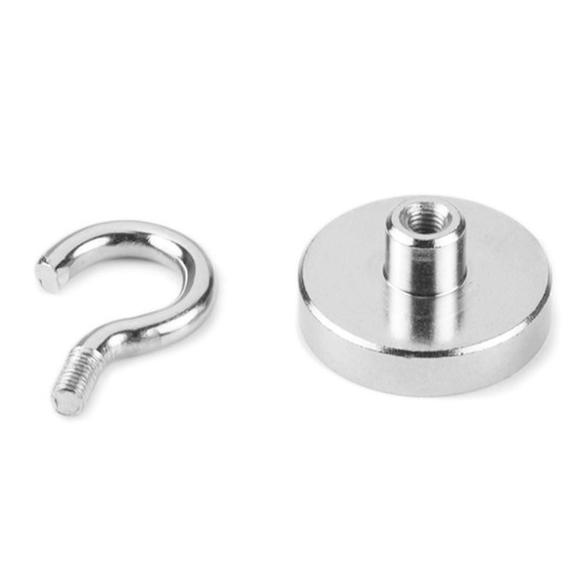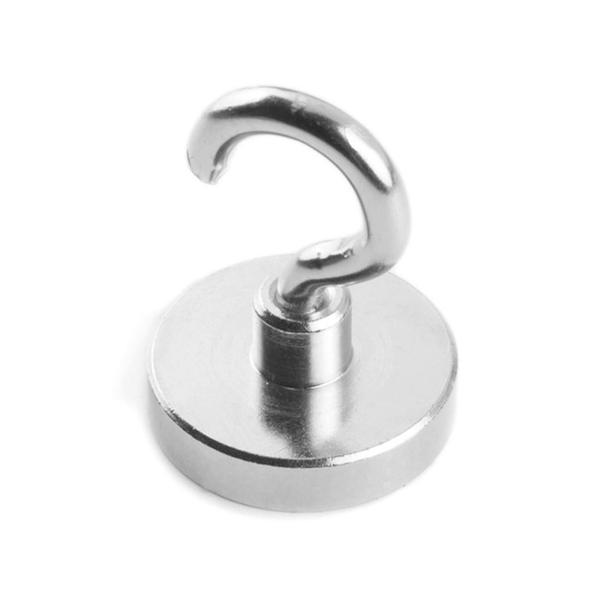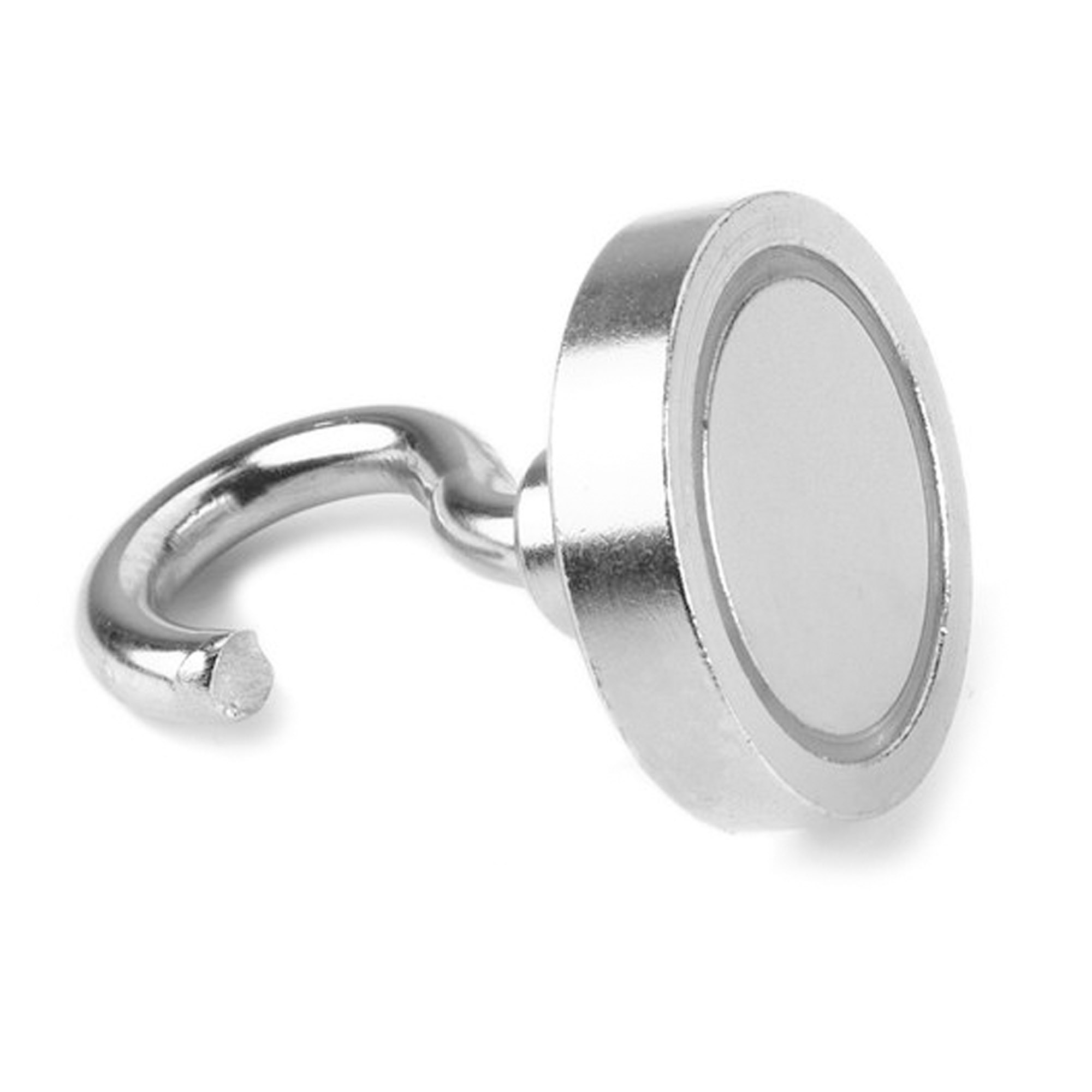 Aimant à pot avec crochet et une force de traction d'environ 28 kg.