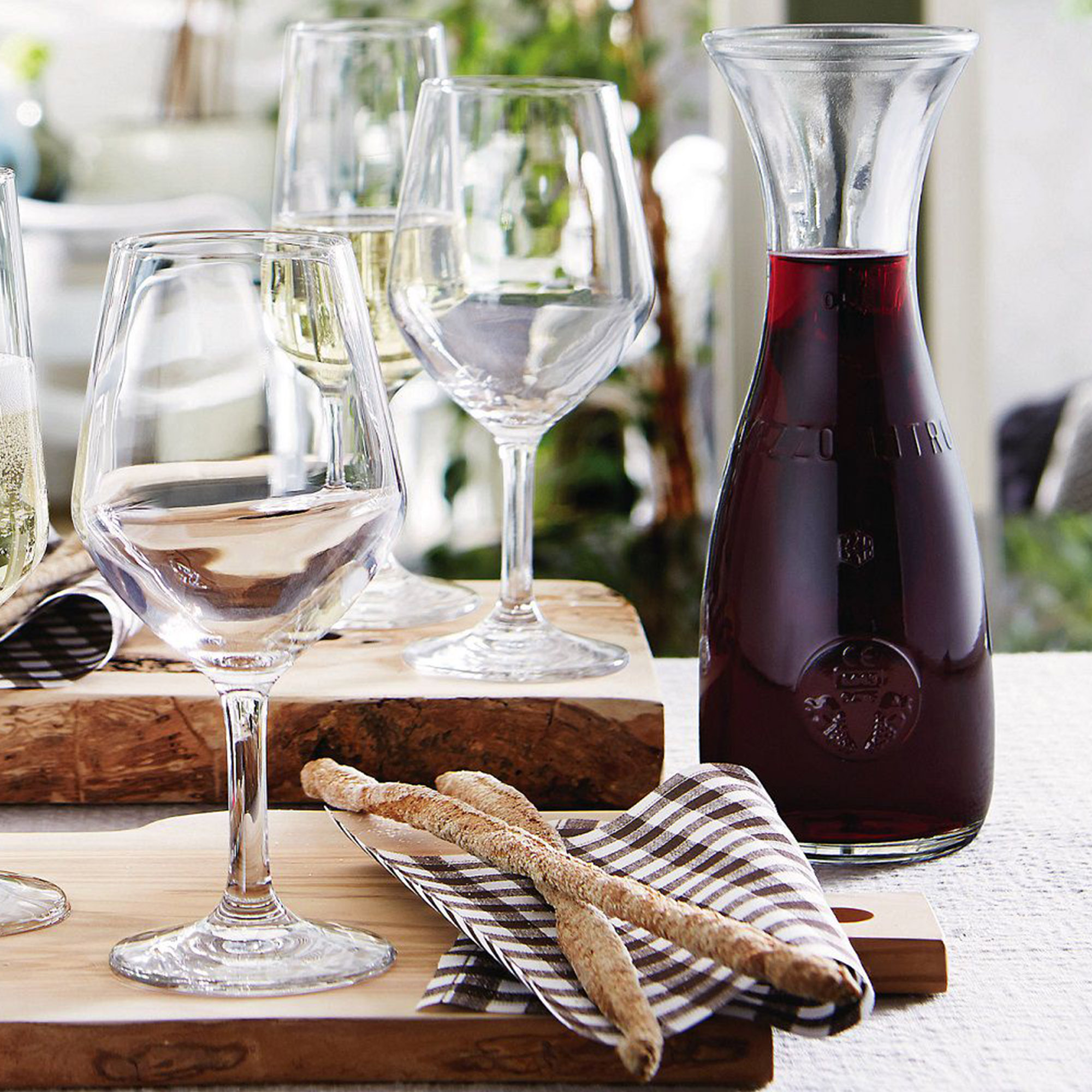 La carafe / bouteille de masse italienne a été développée à l'origine pour le secteur de la restauration. C'est pourquoi il dispose également d'un calibrage pratique, qui ne doit manquer dans aucune carafe en verre. Il trouve de plus en plus sa place dans l'usage privé