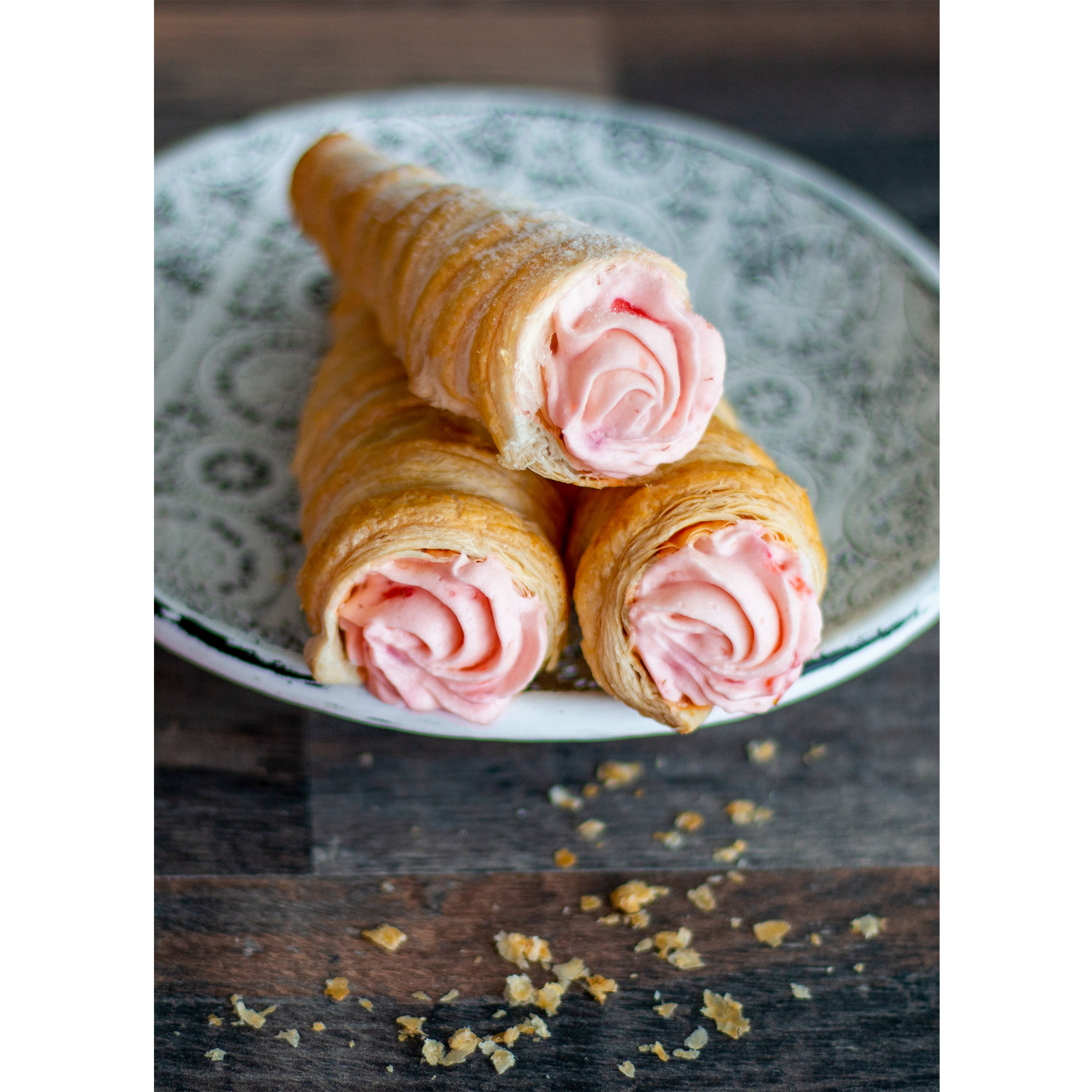 Avec notre moule à écailles, vous réussirez des desserts sucrés et des variations salées de fingerfood et vous surprendrez vos invités avec de délicieuses gourmandises. Il suffit de cuire des rouleaux de pâte feuilletée et de les servir avec une garniture crémeuse.