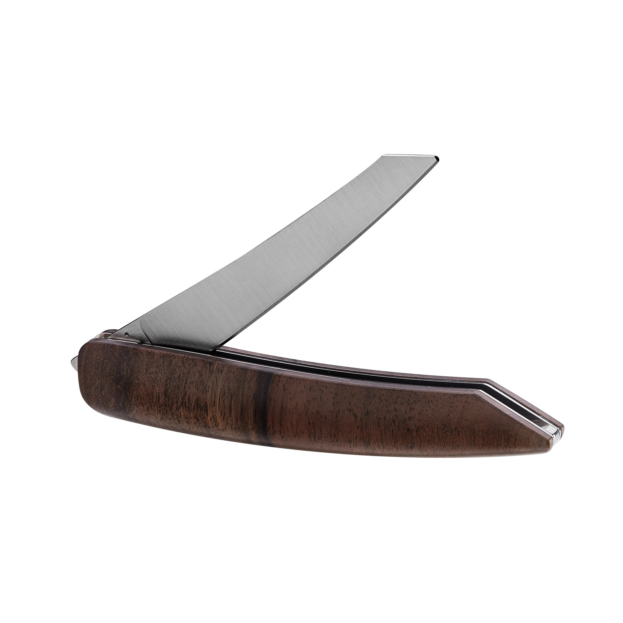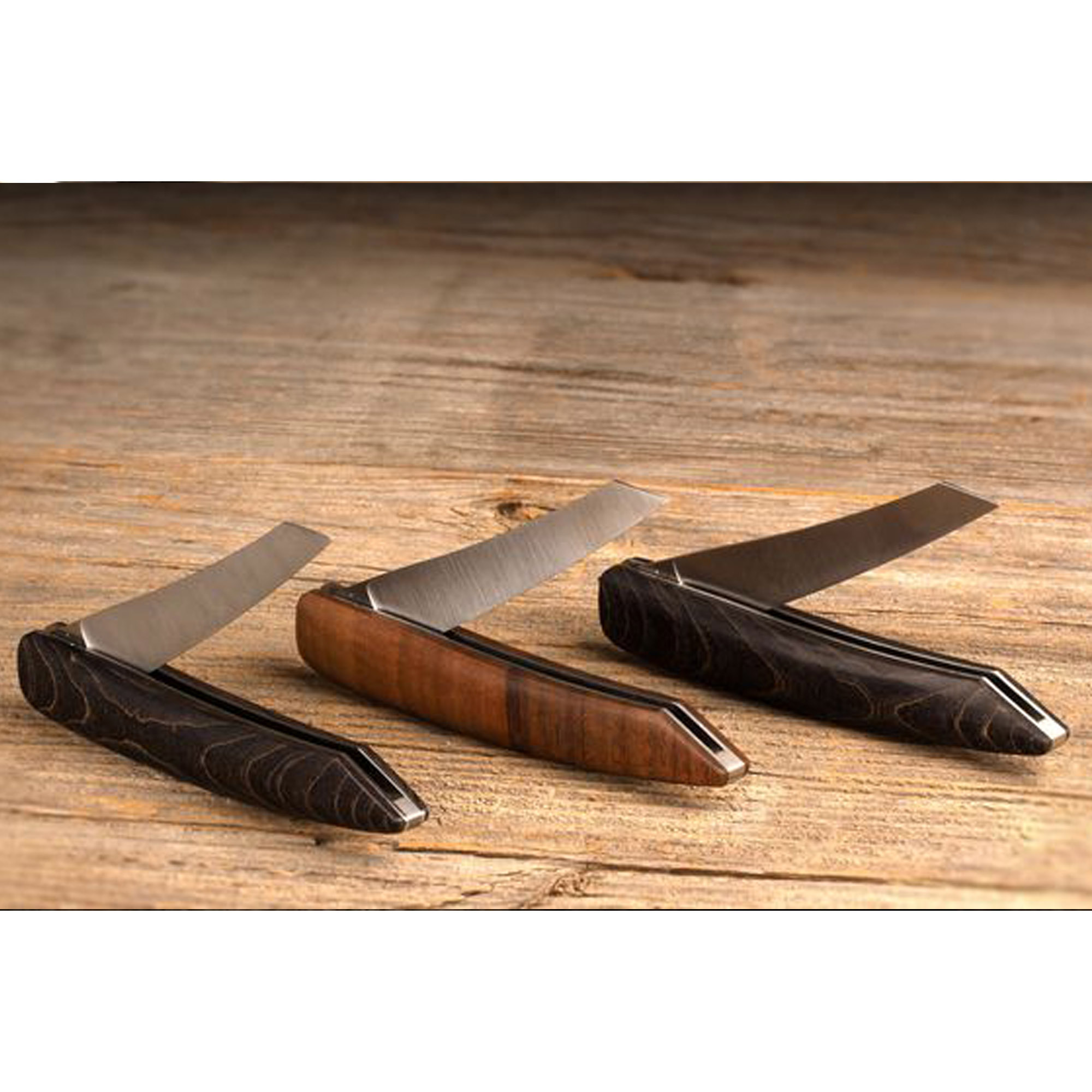 Le couteau de poche sknife est fabriqué en acier chirurgical - un "couteau à steak à emporter". Le couteau de poche sknife a une lame tranchante d'une dureté de 59 HRC et présente une résistance à la corrosion quatre fois supérieure à celle des couteaux de poche traditionnels. Comme pour tous les couteaux sknife, la finition est effectuée dans la manufacture de couteaux à Bienne.