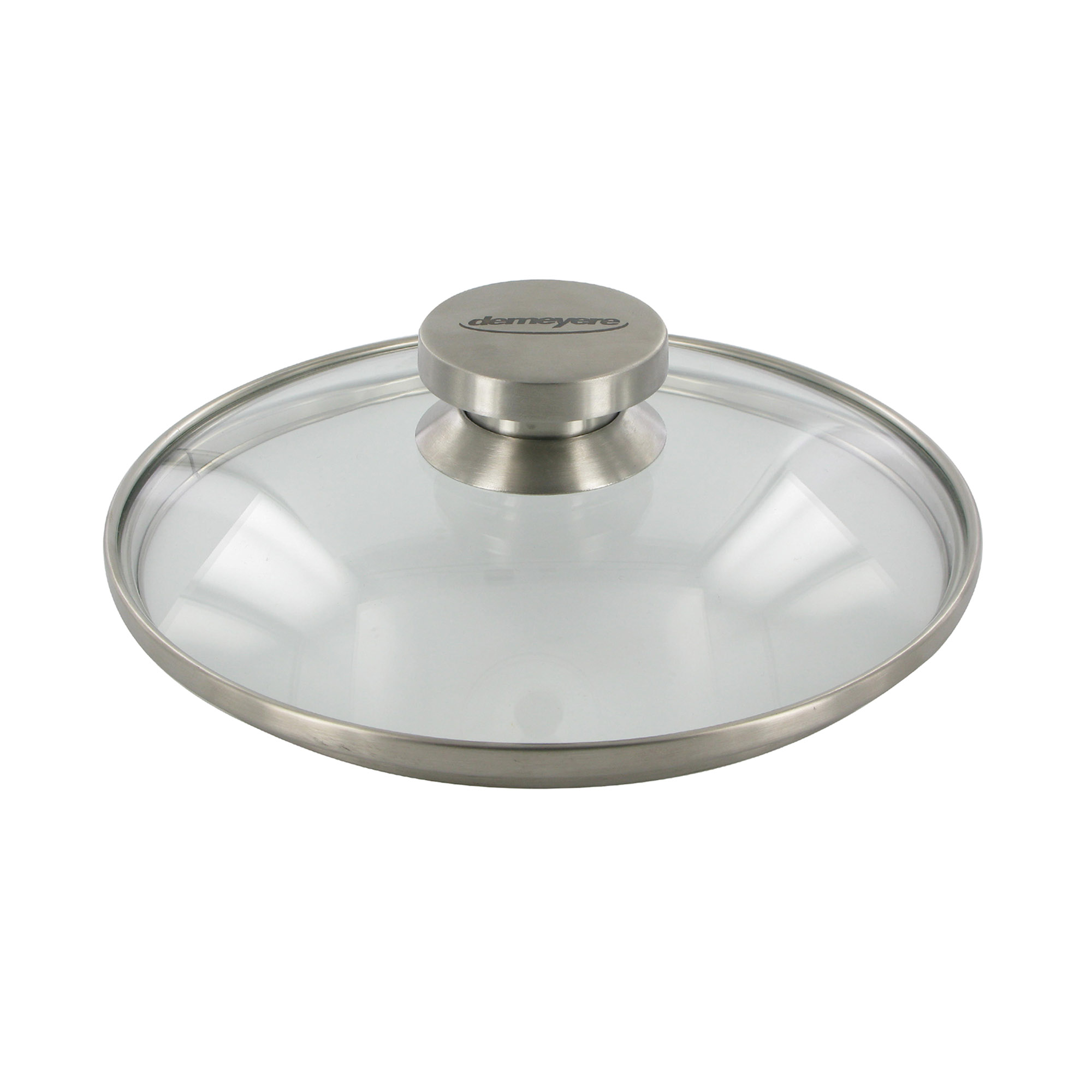Couvercle en verre avec anneau en acier avec taille de poêle correspondante.