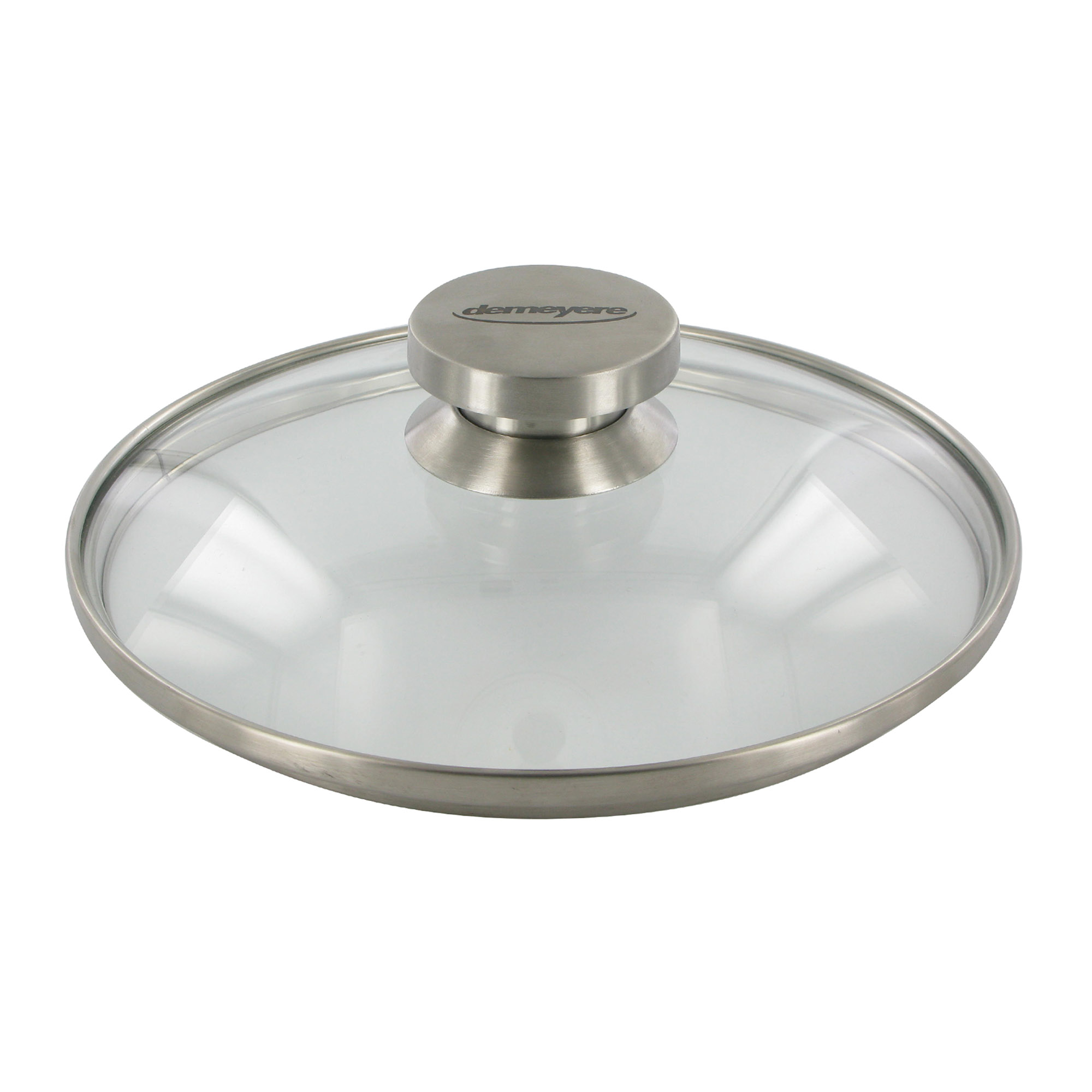 Couvercle en verre avec anneau en acier avec taille de poêle correspondante.