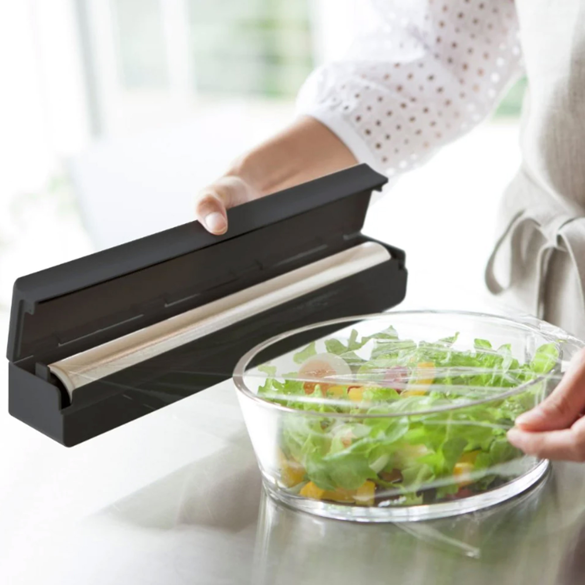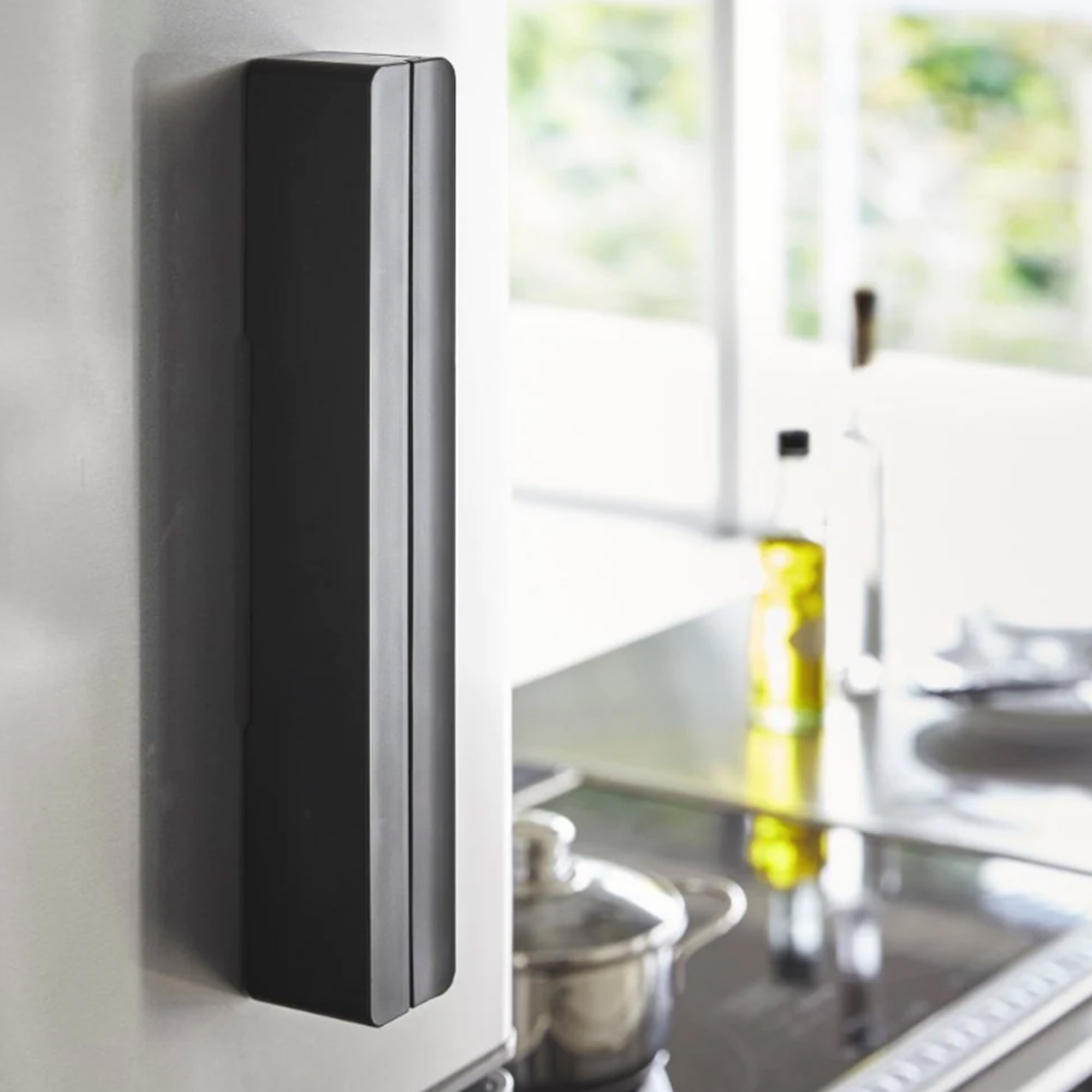 Le distributeur de film magnétique est simple et beau, mais surtout pratique. Il est facile à utiliser et coupe les films d'aluminium et les films alimentaires. Grâce à la barre magnétique au dos, le distributeur de film plastique peut être fixé sur n'importe quelle surface magnétique et est rapidement à portée de main.