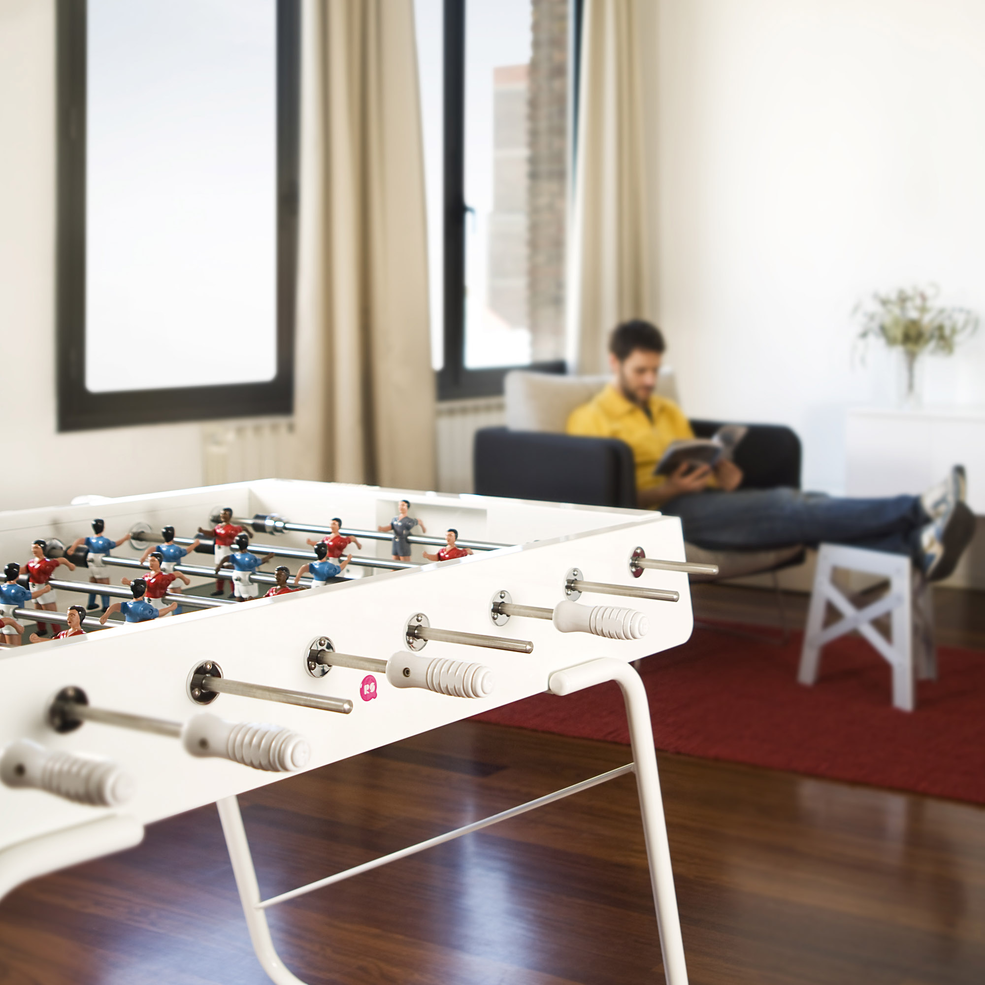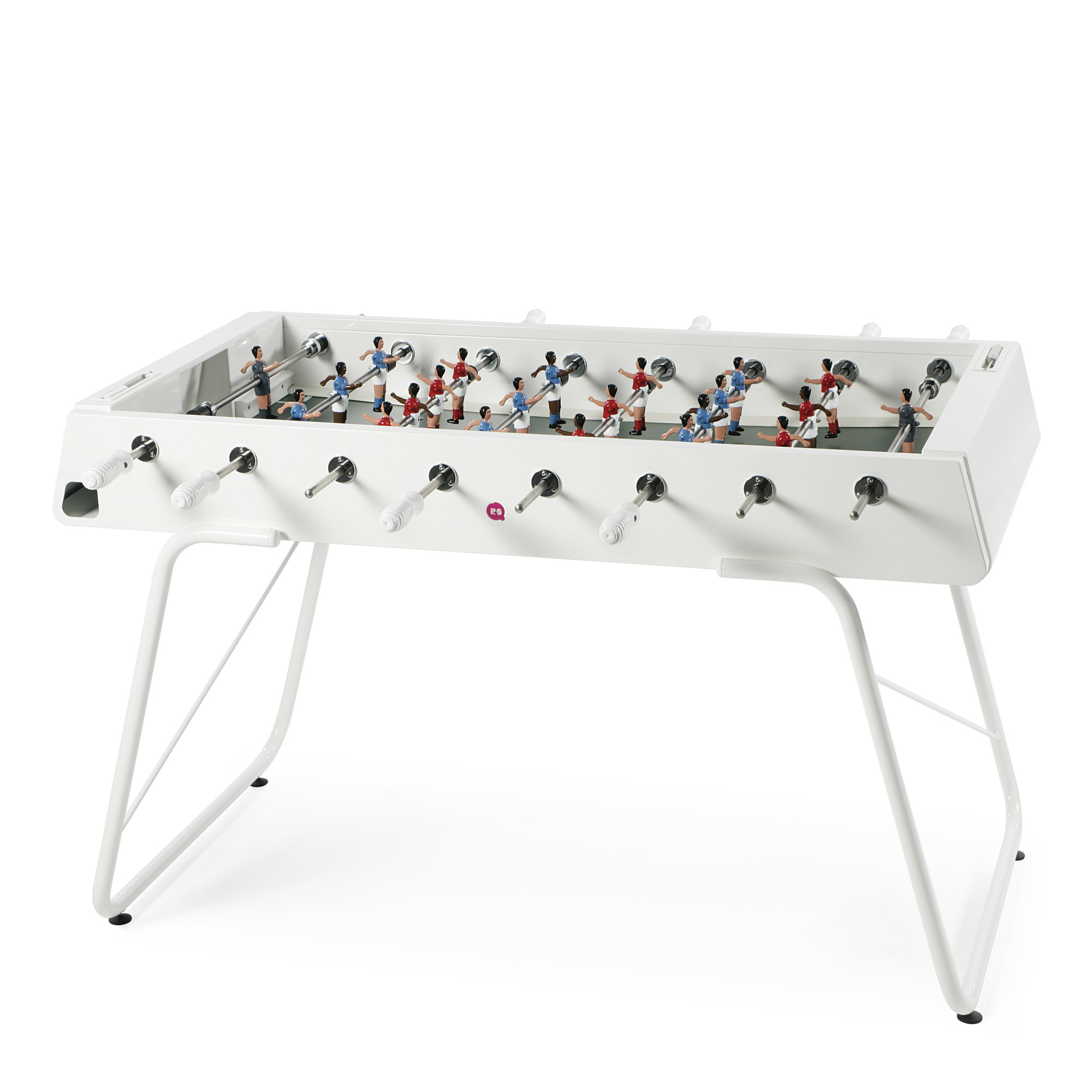 Cette table de football est résistante aux intempéries et peut être utilisée à l'intérieur comme à l'extérieur. Les figurines en aluminium coulé sont remplaçables individuellement à tout moment - comme toutes les autres pièces d'ailleurs.
