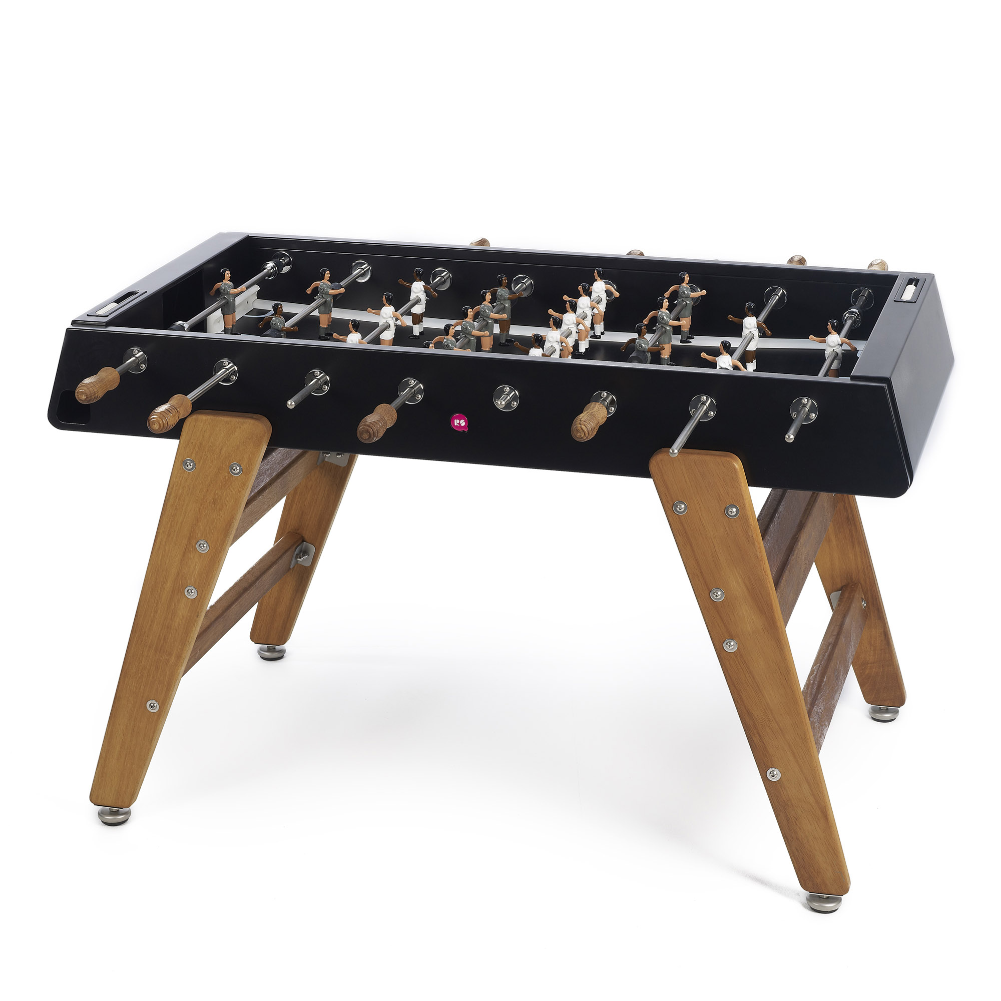 Cette table de football est résistante aux intempéries et peut être utilisée à l'intérieur comme à l'extérieur. Les figurines en aluminium coulé sont remplaçables individuellement à tout moment - comme toutes les autres pièces d'ailleurs.