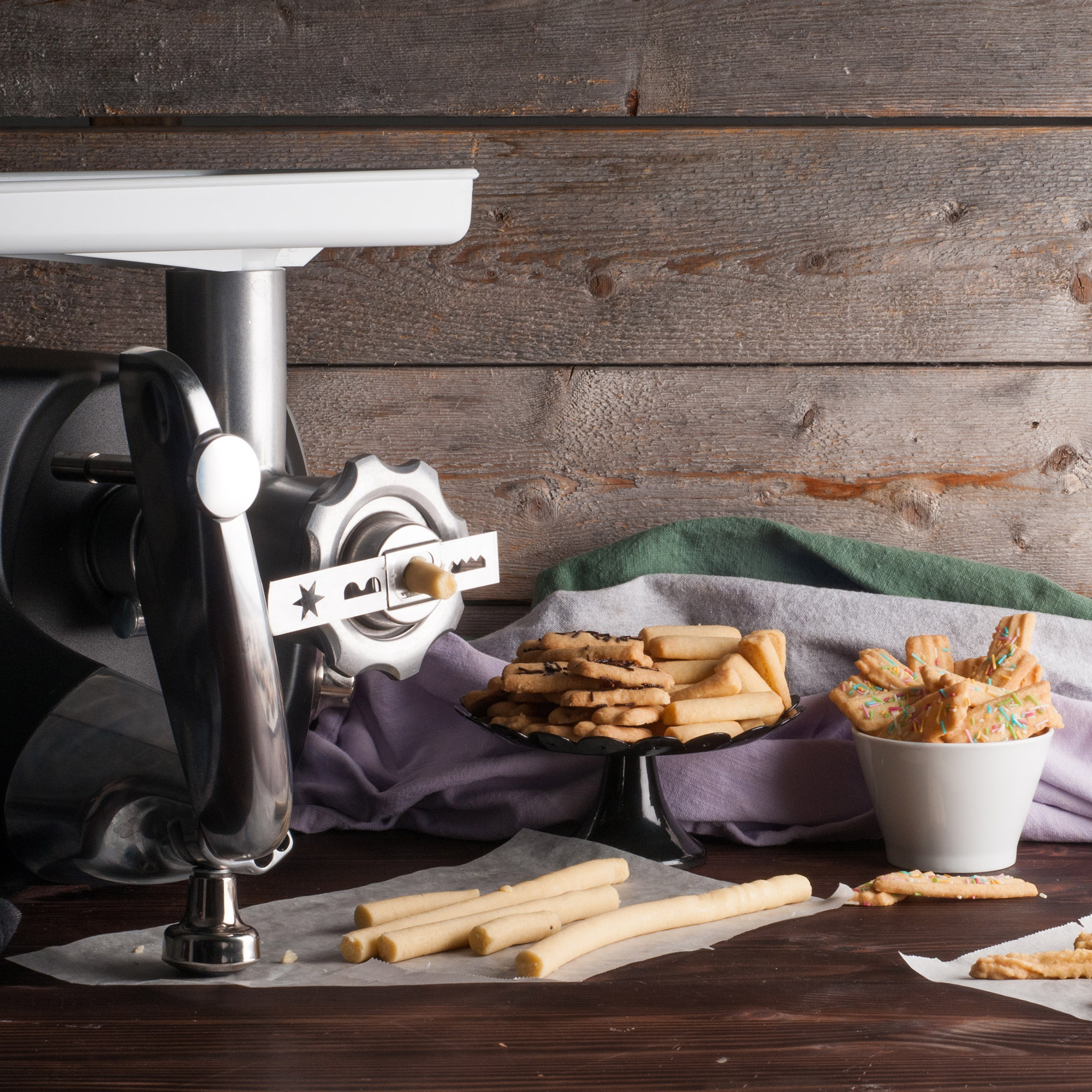 Avec l'Ankarsrum Deluxe Package, en plus des options de cuisson de l'emballage de base, vous pouvez préparer vous-même différentes sortes de pâtes, purées de fruits et légumes, fromage râpé, fruits pressés et soupes et confitures.