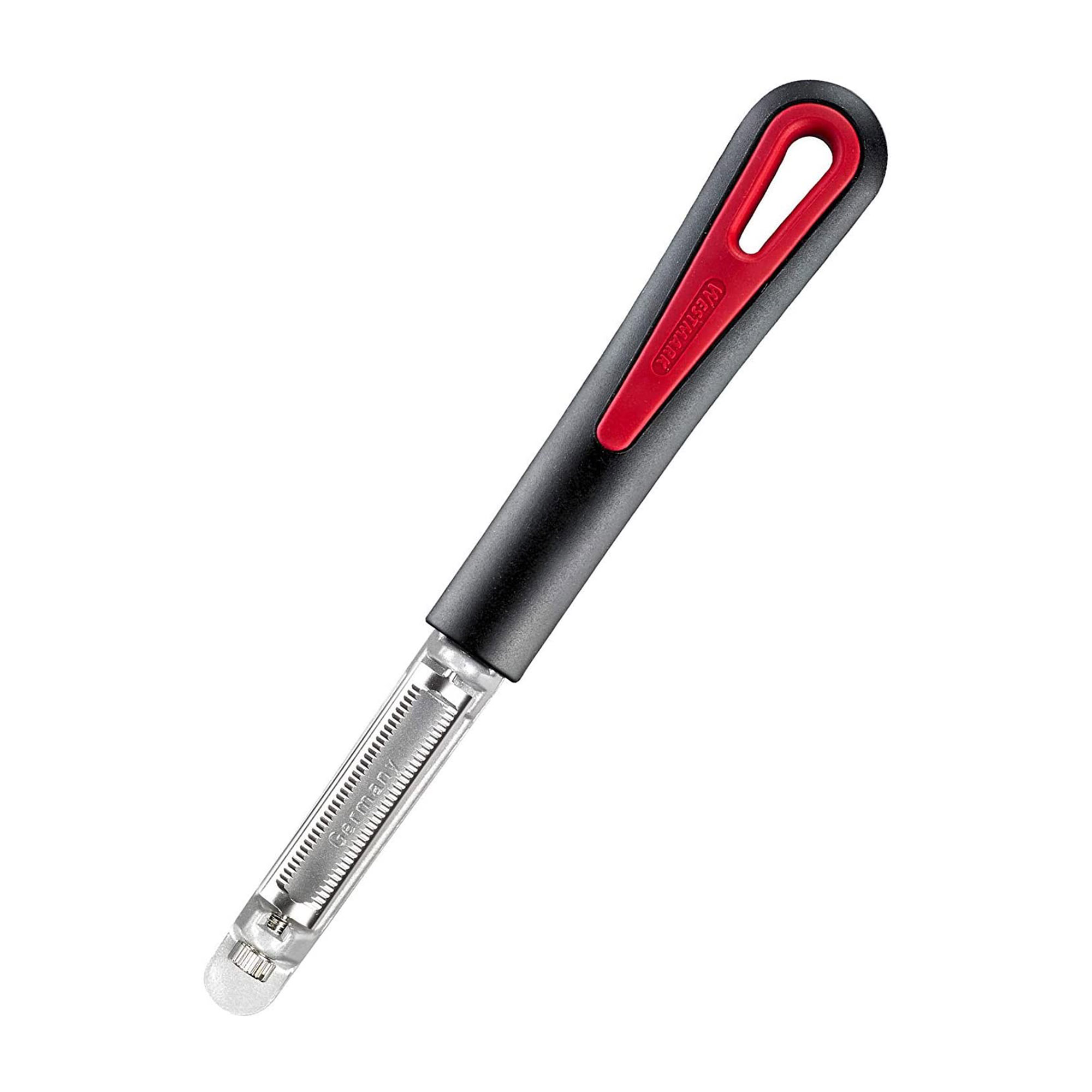Grâce à l'éplucheur de tomates et de kiwis, les fruits et légumes à peau fine peuvent être épluchés rapidement et sans trop de gaspillage grâce à la lame légèrement dentelée. L'éplucheur peut être utilisé par les droitiers et les gauchers.