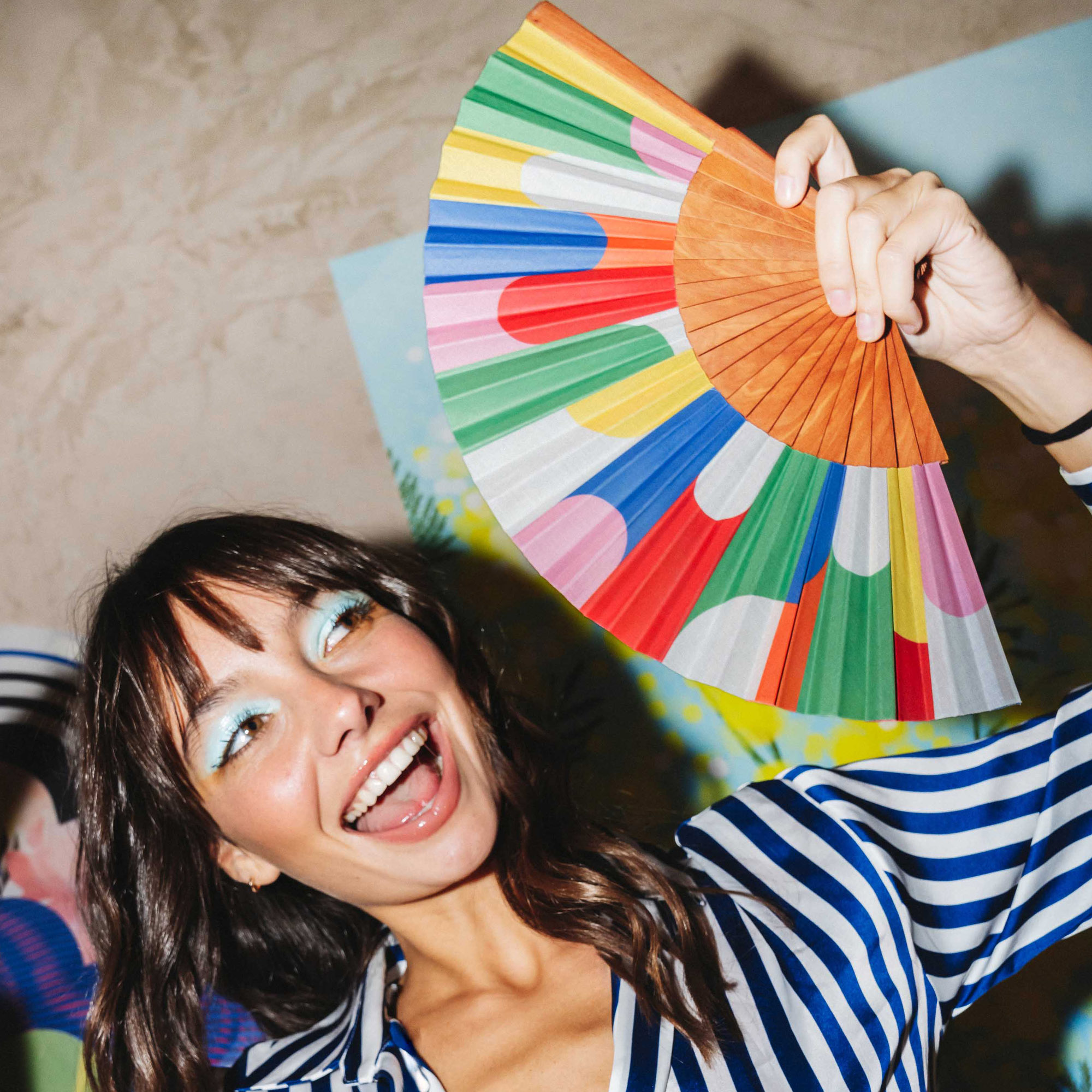 On ne peut qu'être fan de "A FAN OF". Ce label vivant et frais de Barcelone se consacre entièrement aux éventails. Ceux-ci sont colorés, innovants, durables et tout simplement cool. Chaque éventail est conçu en Espagne et fabriqué à la main. Il est fabriqué en bois de poirier naturel et en tissu de coton écologique certifié. L'accessoire parfait pour l'été !