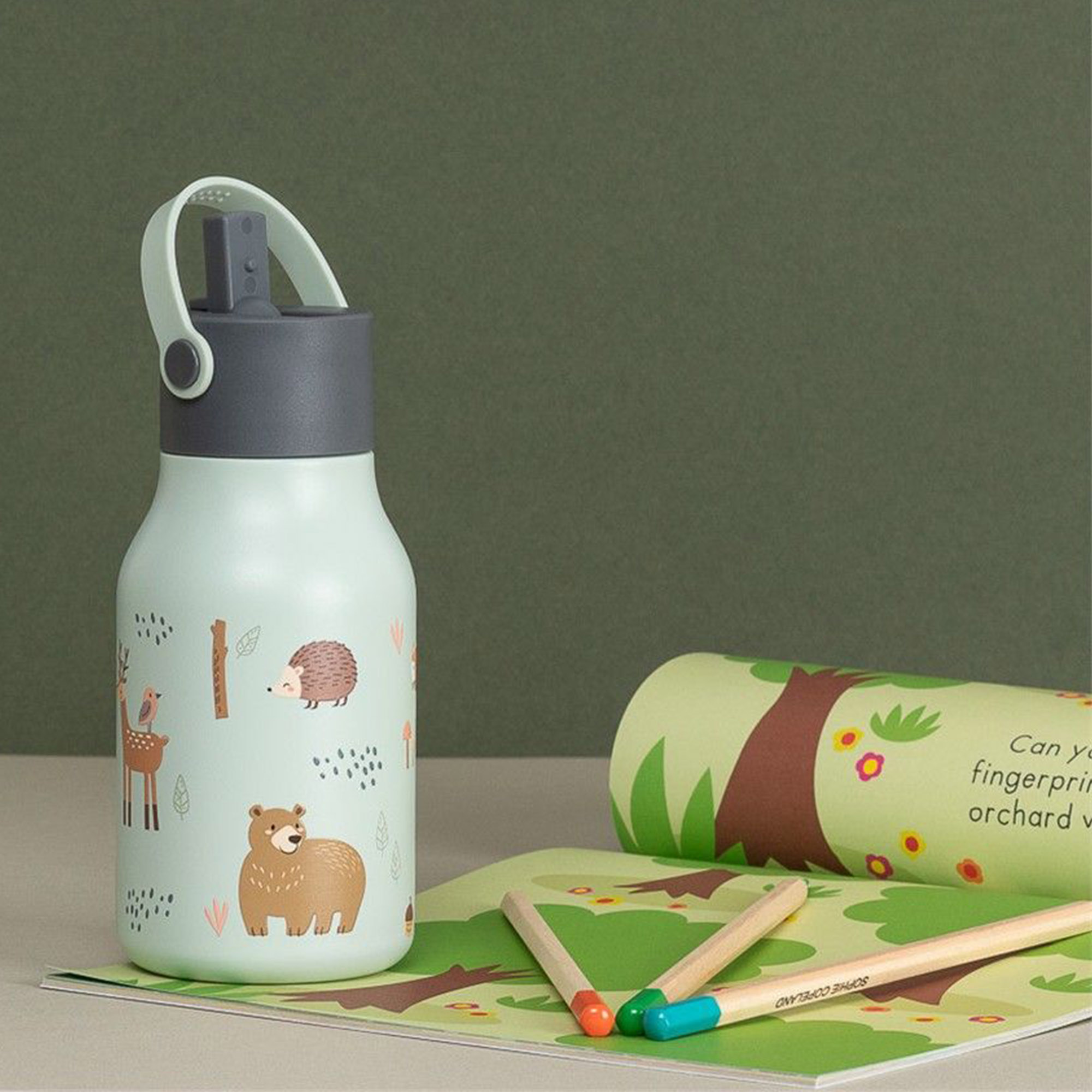 La gourde aux motifs joyeux et colorés est en acier inoxydable léger et possède un couvercle rabattable anti-fuite. La poignée permet aux petites mains des enfants de porter la gourde confortablement. En outre, il est exempt de BPA, de PVC et de phtalates et passe au lave-vaisselle. Il est donc parfait pour les enfants à partir de 18 mois !