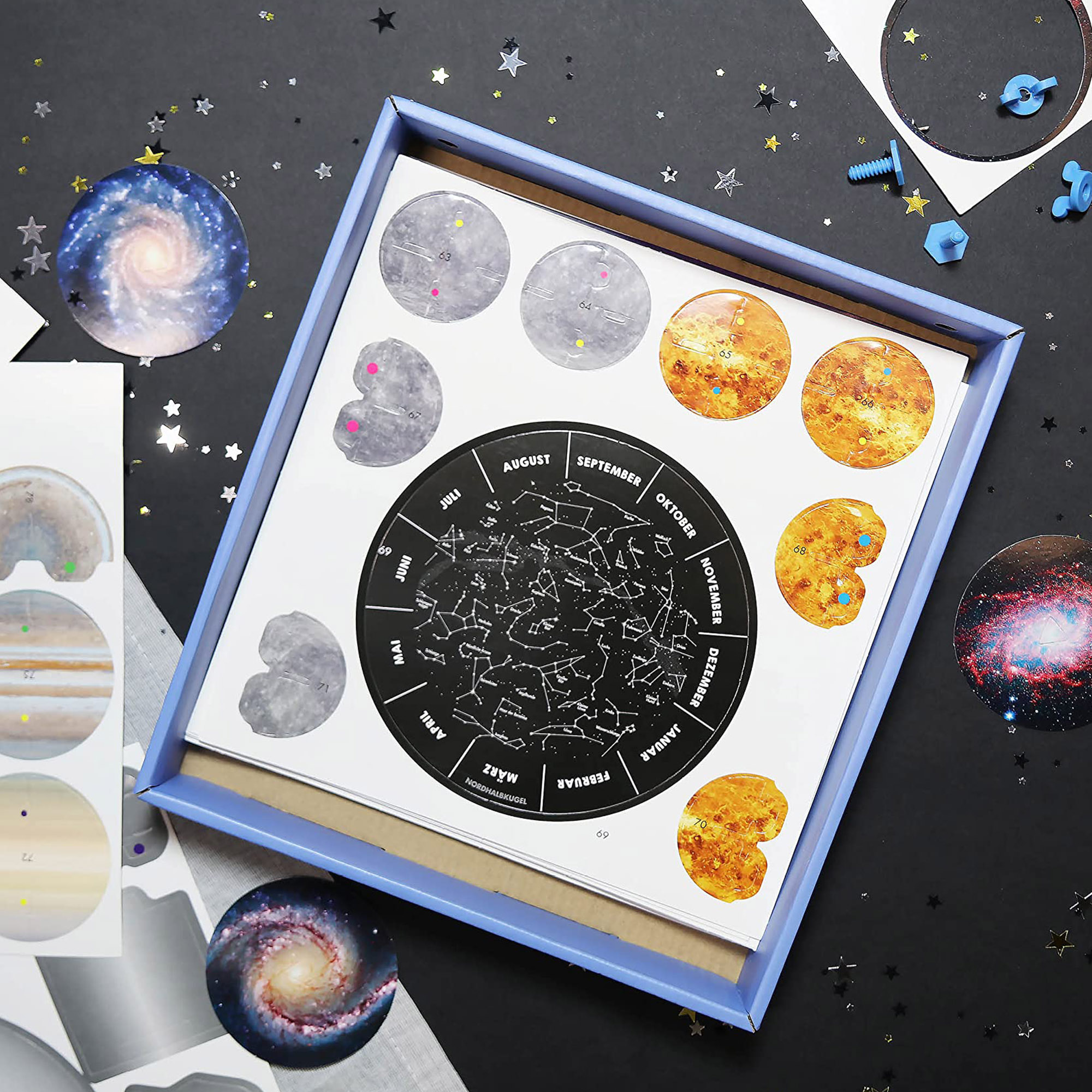 Mission : l'exploration spatiale ! Embarque pour une aventure fascinante à travers l'espace et explore les secrets de l'univers. Découvre le système solaire, les galaxies lointaines et les constellations du ciel nocturne grâce à des expériences passionnantes. Construis tes propres modèles 3D des planètes, de la sonde spatiale Voyager, des différentes phases lunaires, de la navette spatiale, d'une fusée à trois étages avec sa rampe de lancement et bien plus encore ! De nombreuses illustrations dans le livre t'expliquent l'immensité de l'univers et des phénomènes comme les trous noirs ou les géantes rouges.