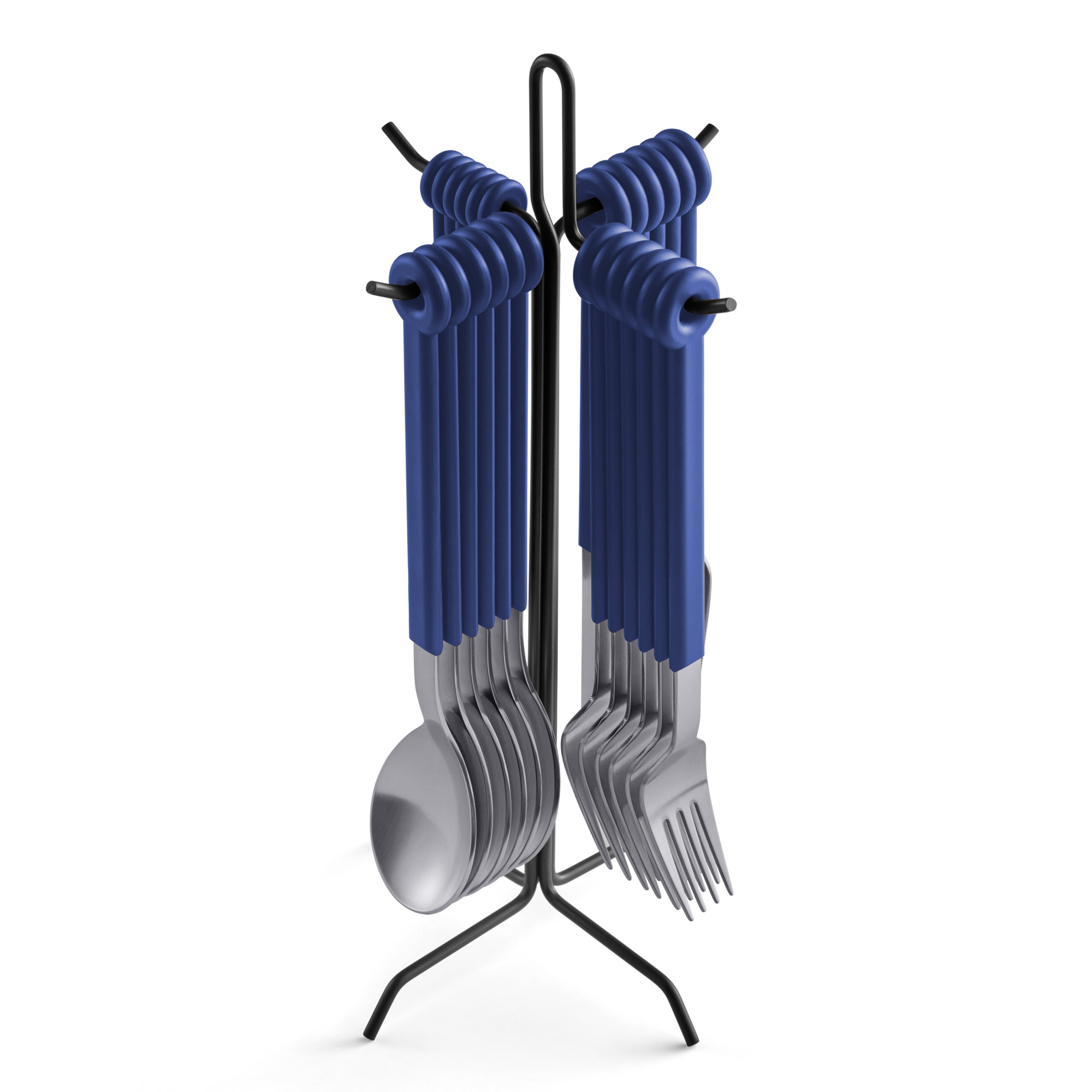 La coutellerie est munie d'un anneau à l'extrémité de la poignée en plastique. Les couverts peuvent être suspendus sur le support et sont toujours à portée de main pour toutes les personnes assises à table.