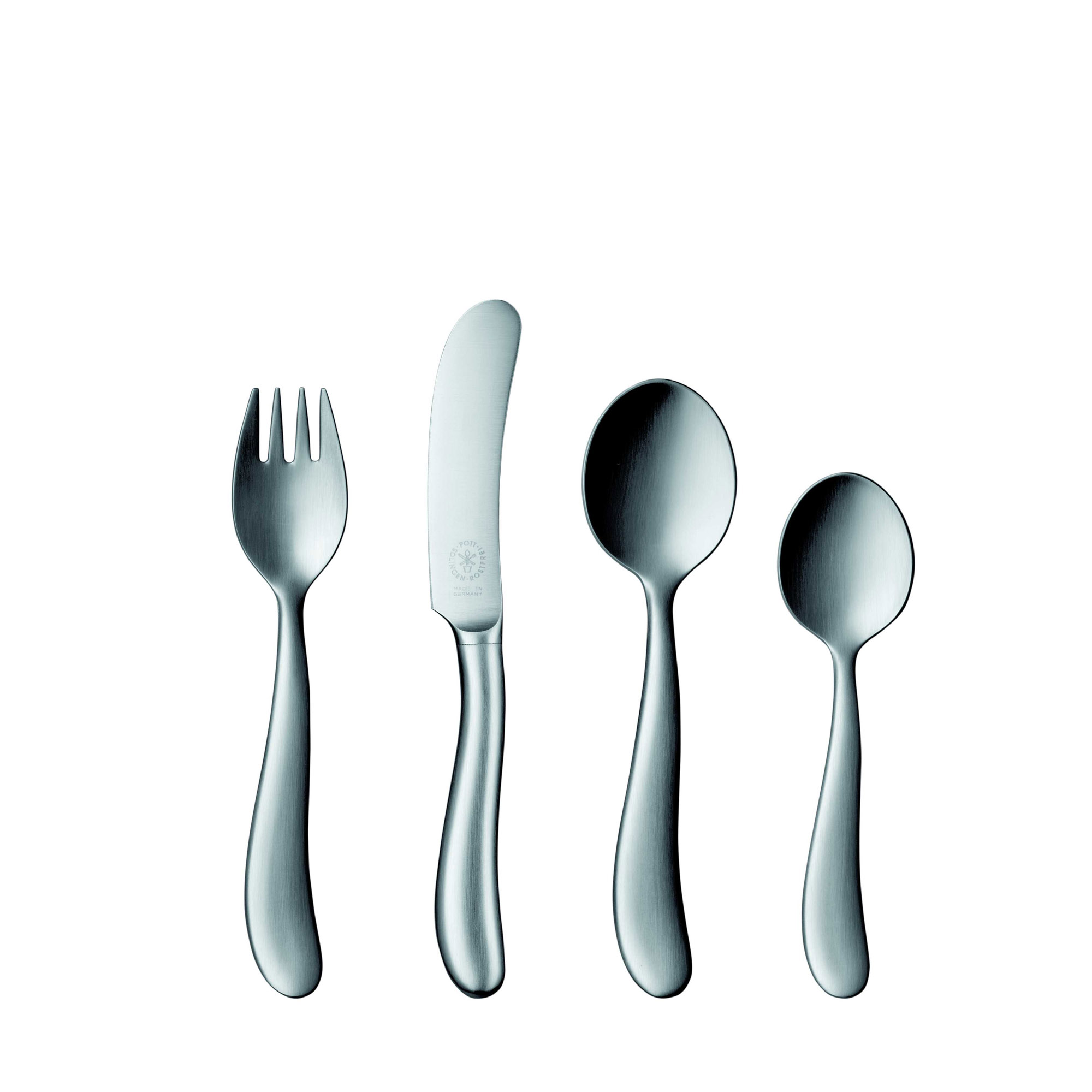 Cette coutellerie amicale pour les mains des enfants est la bonne introduction à l'une de nos techniques culturelles les plus importantes. Les petits apprennent à manger comme des adultes avec leurs propres couverts entièrement fonctionnels. Le couteau est aiguisé, la fourchette pique et avec la cuillère droite en bouche ils s'habituent progressivement à la bave. Même si vous avez grandi, vous pouvez toujours l'utiliser, par exemple comme couteau à beurre, fourchette à gâteau ou cuillère à muesli.