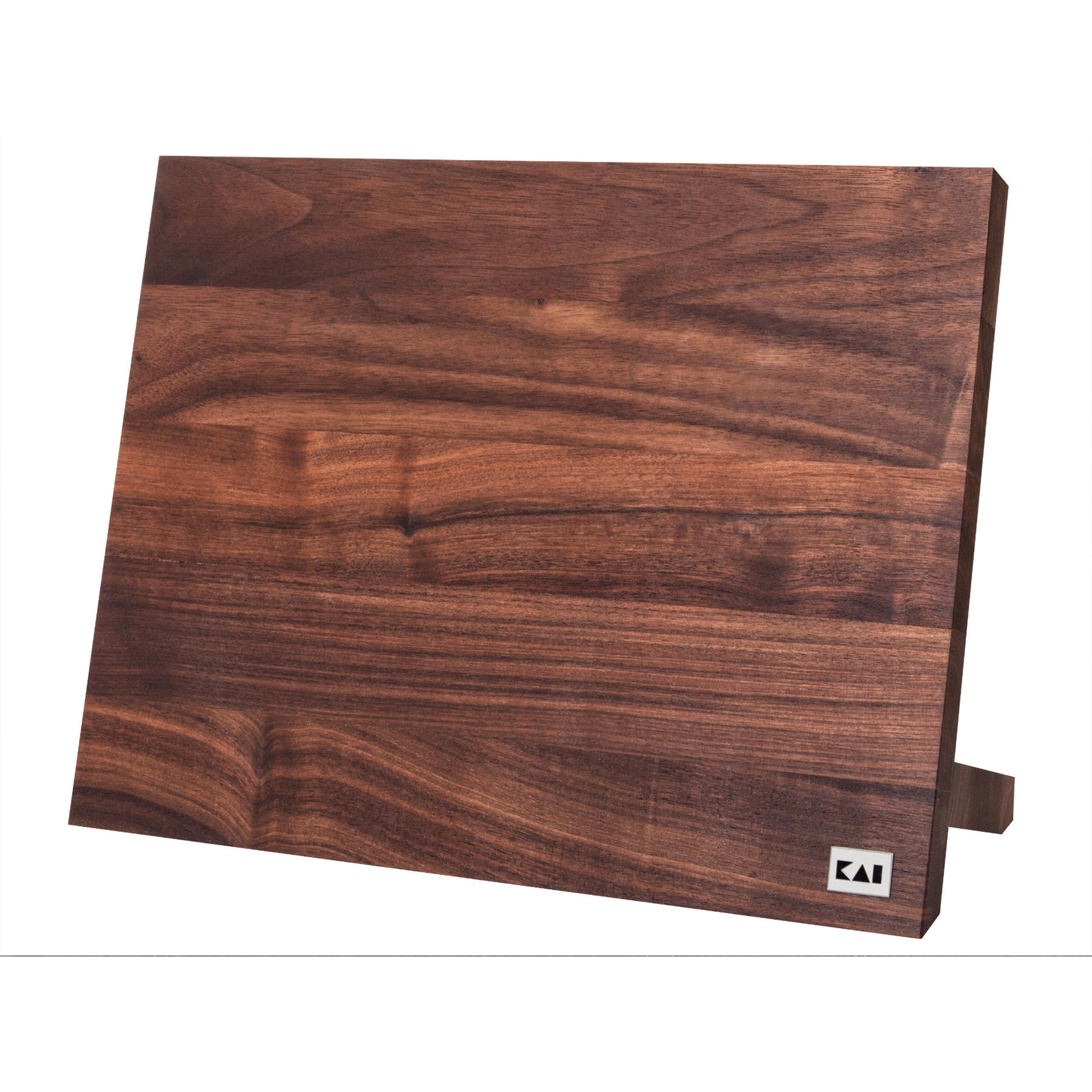 L'élégante planche en noyer peut accueillir 6 à 8 couteaux grâce à son système magnétique pratique.