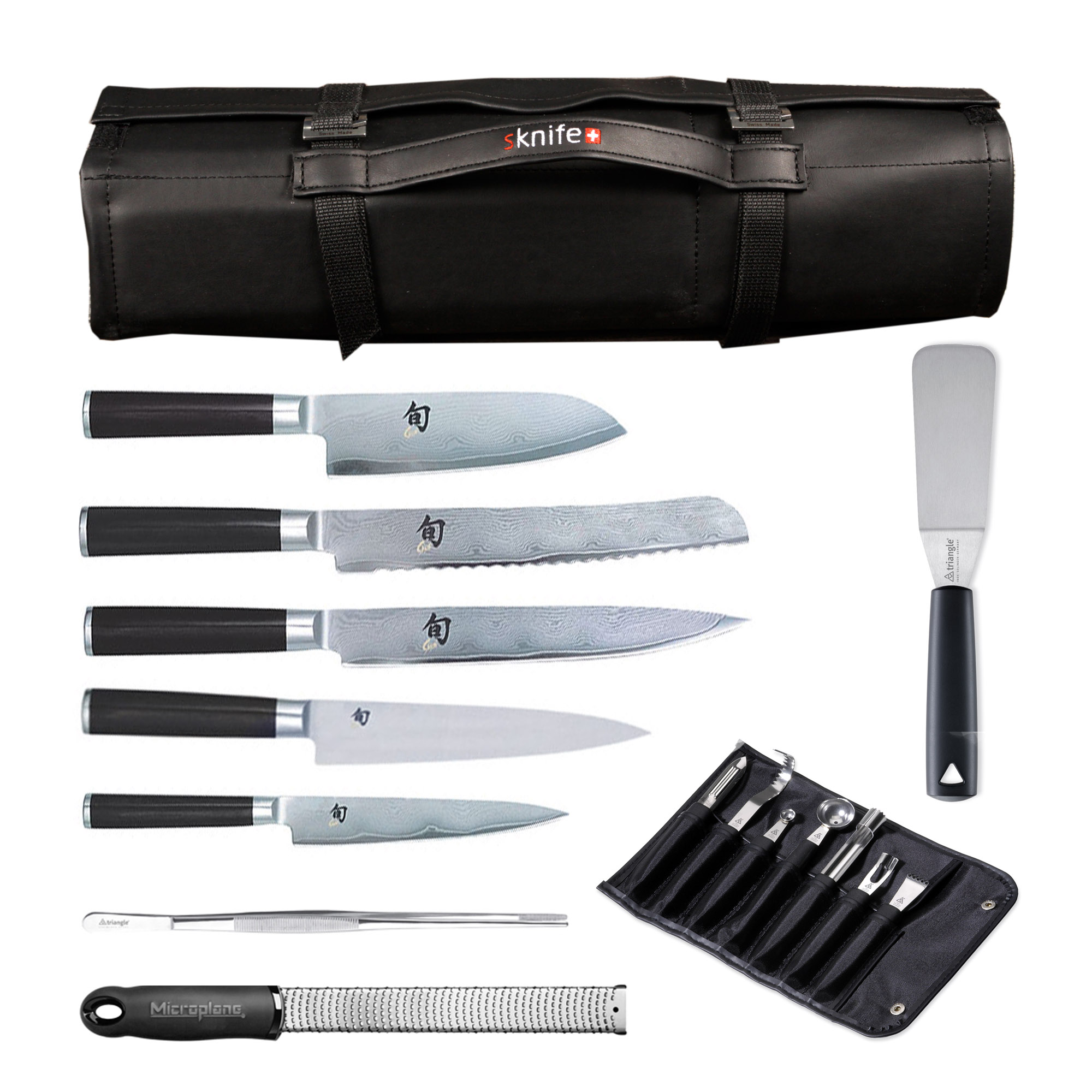 Le sac à couteaux en similicuir noir est astucieusement conçu et parfaitement adapté au transport de couteaux de cuisine et d'autres petits ustensiles de cuisine importants.