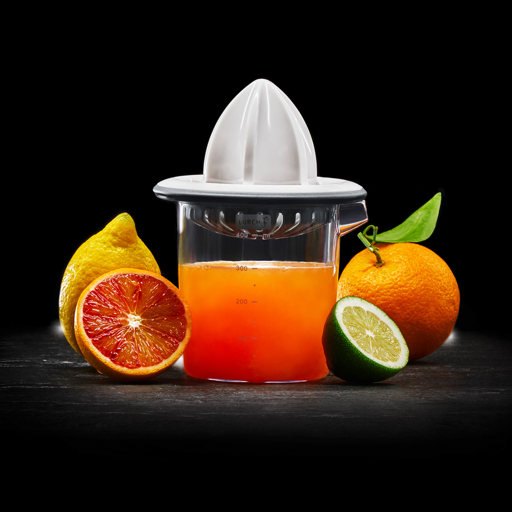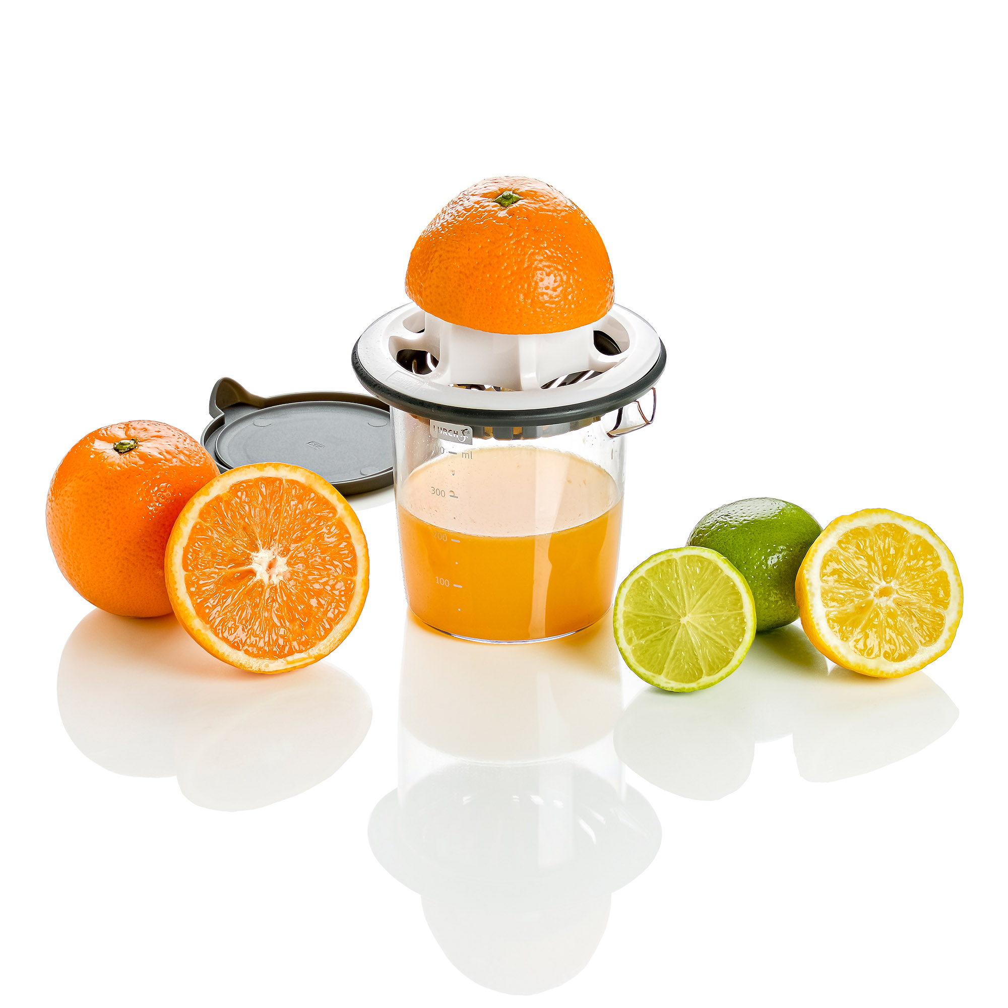 Citrons, citrons verts, oranges, pamplemousses ou pamplemousses - avec le presse-agrumes Lurch, vous obtenez un rendement maximal en jus. Le tamis extra large couvre la chair de jusqu'à 4 grosses oranges. Il sépare les graines et la pulpe du délicieux jus qui s'écoule directement dans le récipient collecteur. Grâce à son bec verseur pratique, vous pouvez le verser proprement dans un verre. Afin que vous puissiez toujours doser le jus avec précision, le récipient collecteur est en outre équipé d'une balance (400ml)