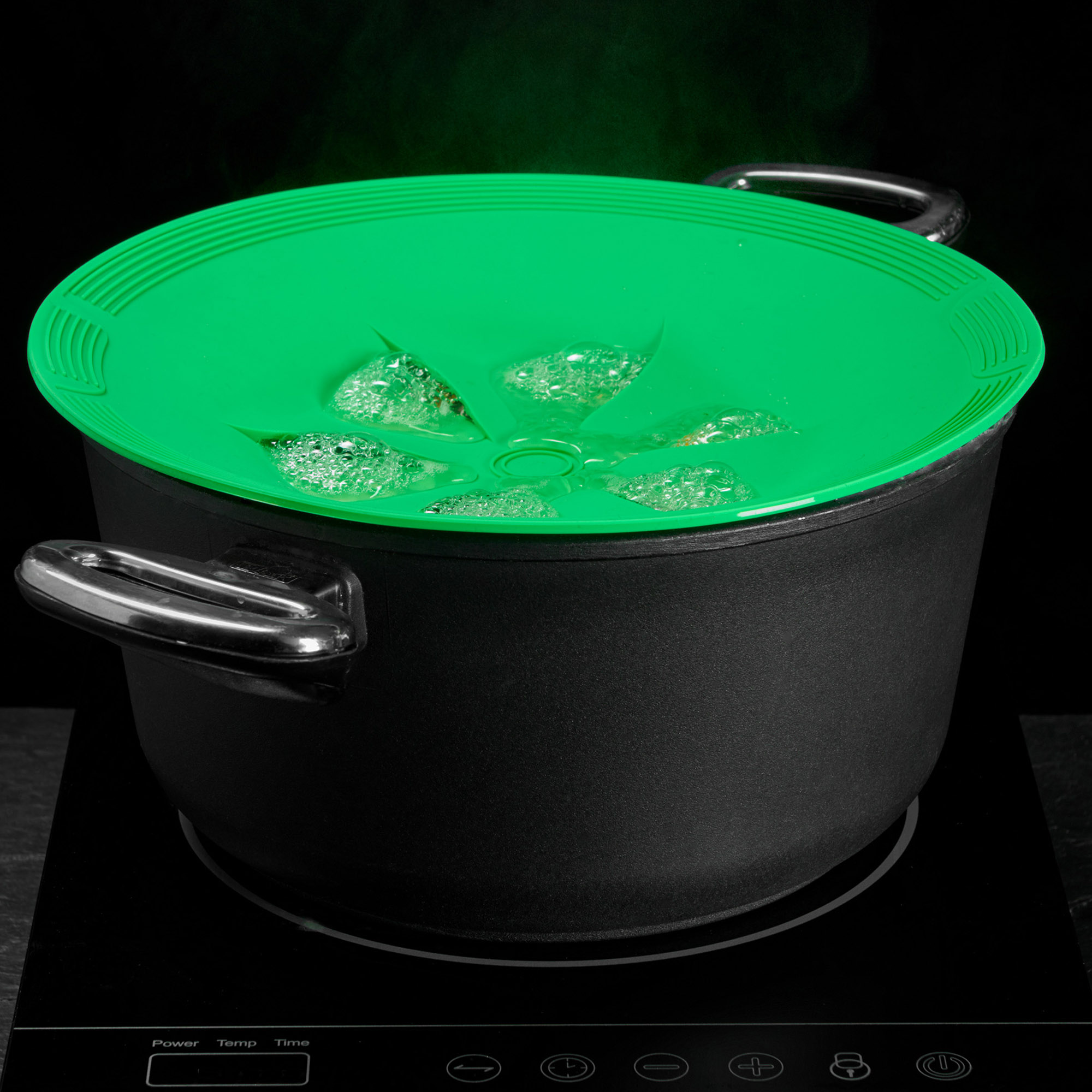 Lorsque vous voulez cuisiner un grand menu, beaucoup de choses sont préparées en même temps. Il n'est pas toujours facile de garder un œil sur tout. Grâce à la protection contre la surcuisson en silicone, la casserole peut mijoter sans souci. En effet, celui-ci empêche les casseroles de différentes tailles de trop cuire. On peut ainsi se rendre tranquillement à la porte pour recevoir son colis ou accueillir ses invités.
