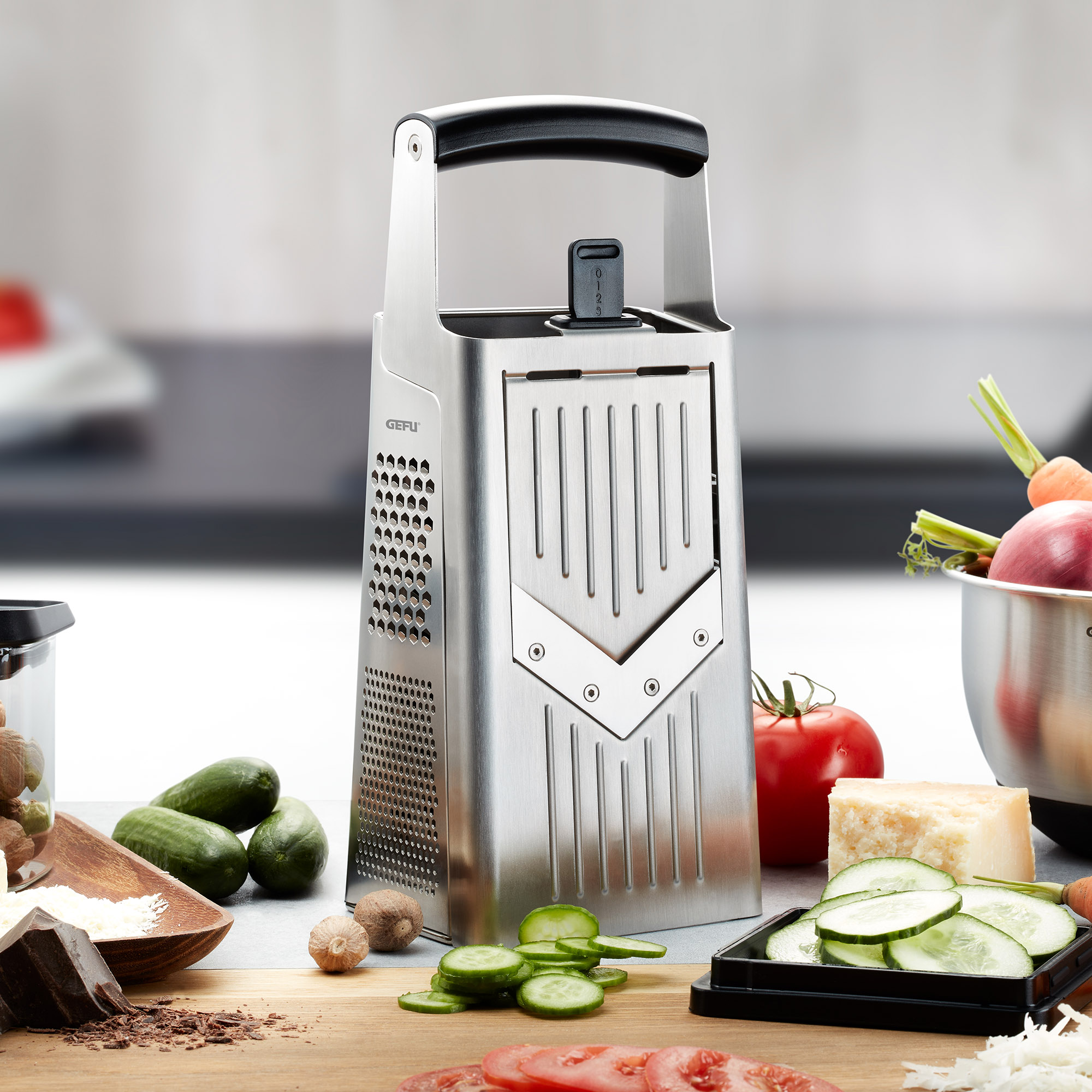 Cette râpe carrée polyvalente à lame en V réglable combine sept fonctions pour couper, râper et émincer avec précision. Qu'il s'agisse de crudités, de fromage à pâte dure ou de râper finement du citron, la lame en acier inoxydable extra-tranchante permet d'obtenir des résultats parfaits en un tour de main.