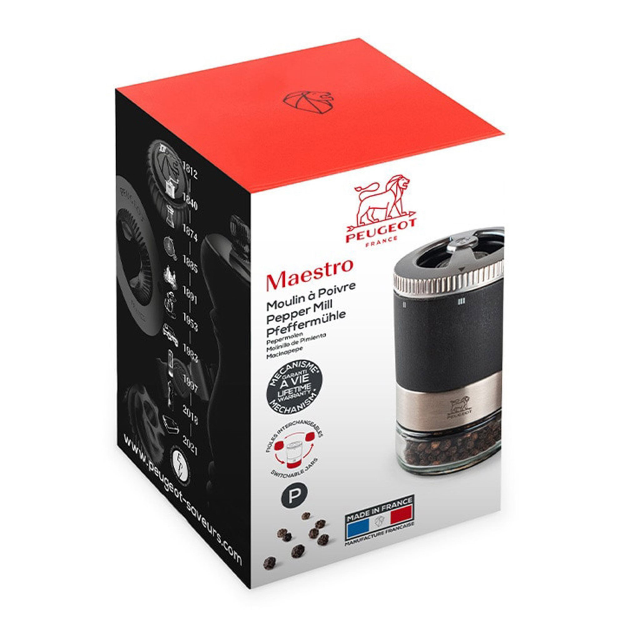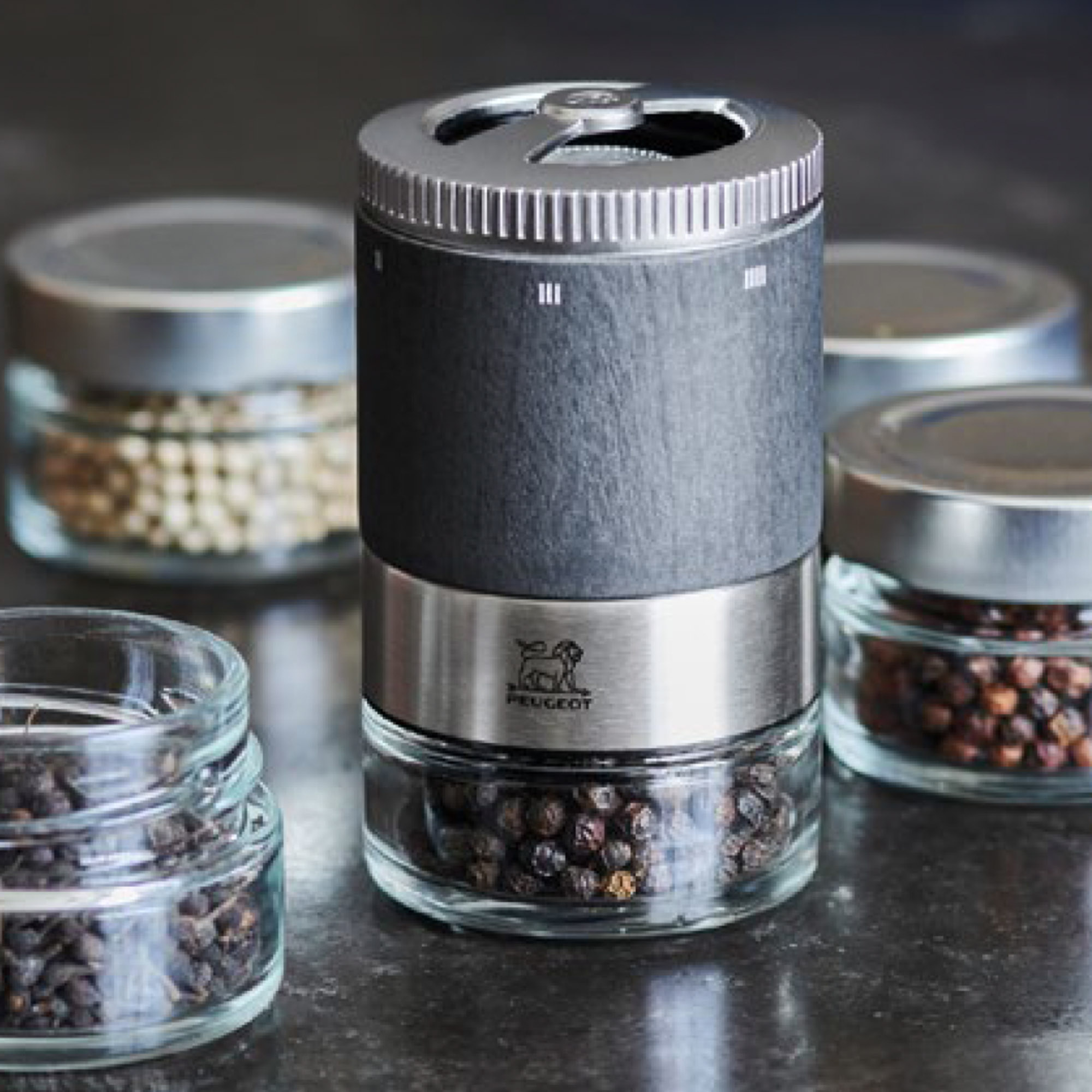 Récipients en verre pour le moulin de Peugeot.