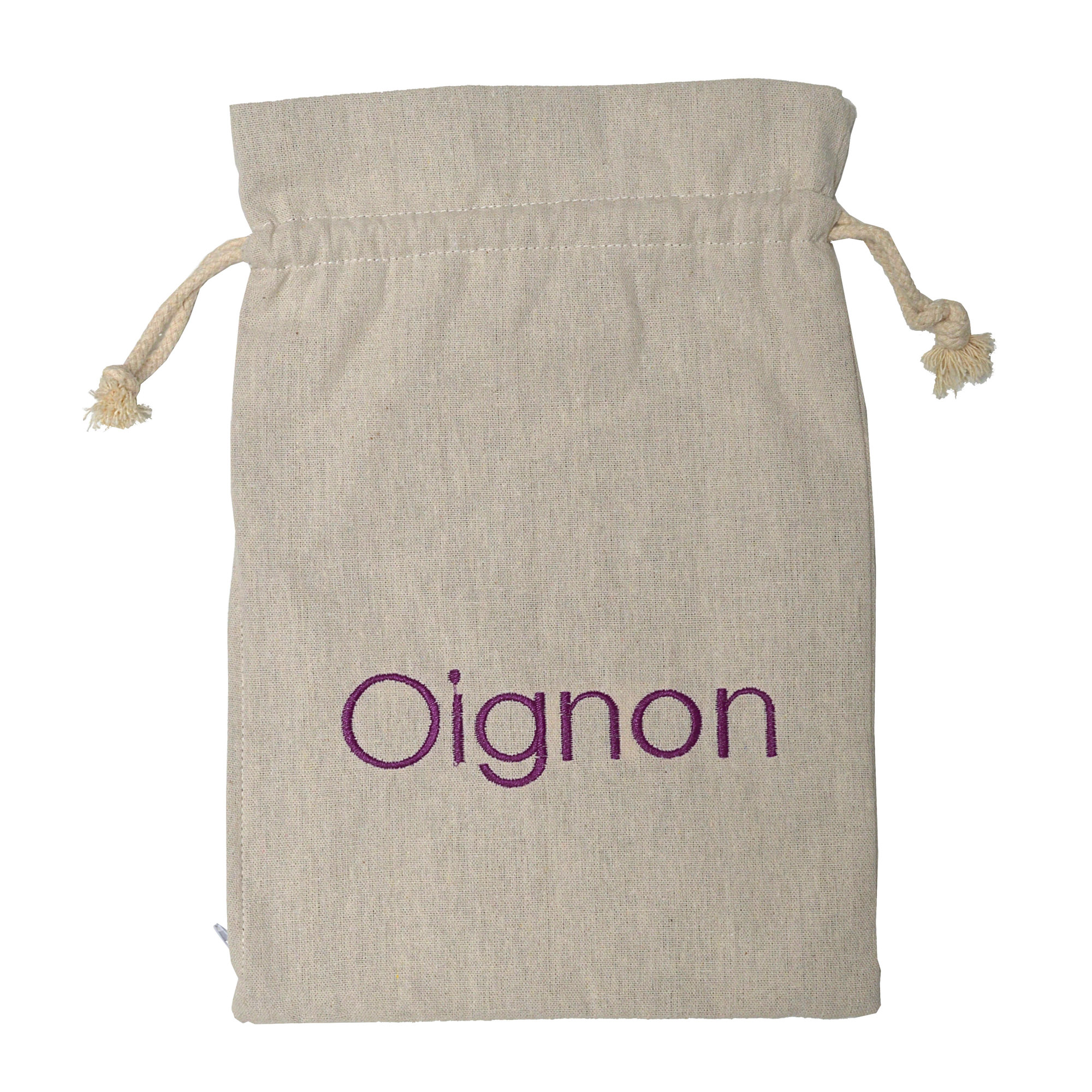 S'ils sont bien conservés, comme par exemple dans ce sac, les oignons se conservent plus longtemps. Le sac peut être accroché à un crochet ou à une barre. Les oignons sont rapidement à portée de main grâce à la fermeture éclair sur le côté.