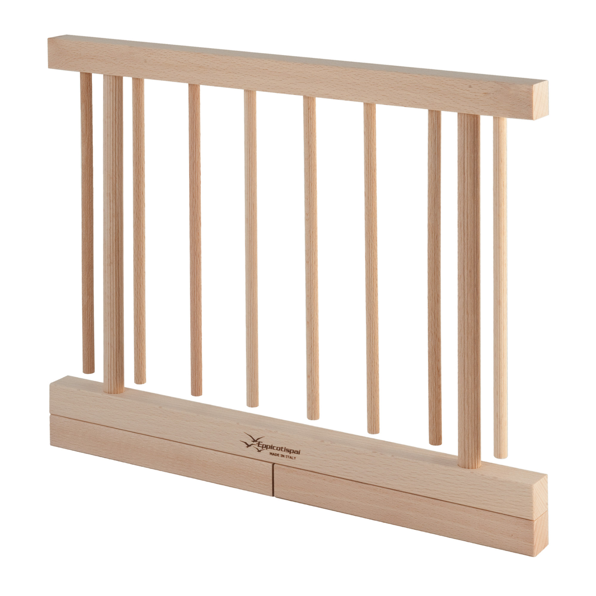 support pour pâtes. Il suffit de suspendre les pâtes fraîches sur les barres et les spaghettis, les tagliatelles ou les linguinis sèchent très facilement. Après utilisation, il suffit de démonter le séchoir et de le ranger à plat dans le tiroir.
