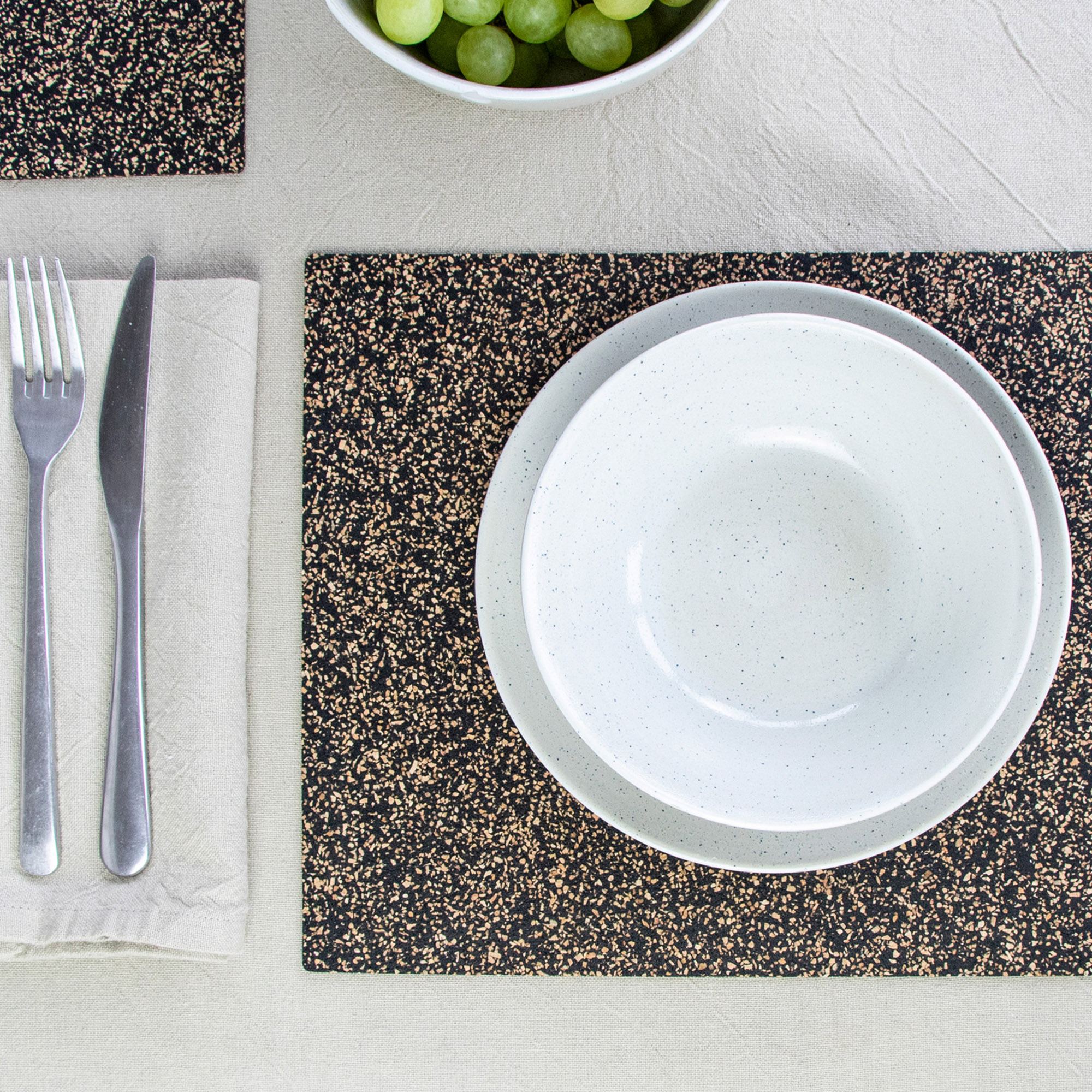 Le set de table est composé d'un mélange de liège bio et de caoutchouc recyclé, ce qui le rend doux au toucher et très flexible.