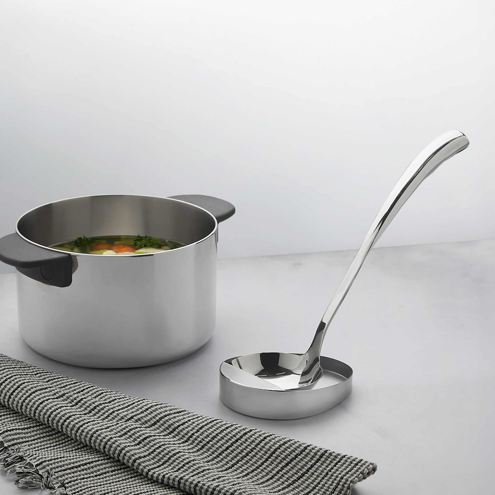 Le support de louche en acier inoxydable de haute qualité offre une solution hygiénique pour mettre vos louches de côté en toute sécurité et proprement pendant que vous cuisinez, sans salir le plan de travail de la cuisine. La forme ovale est conçue pour maintenir en toute sécurité des louches de différentes tailles. Un petit couvercle bloque la louche pour qu'elle soit toujours à portée de main.