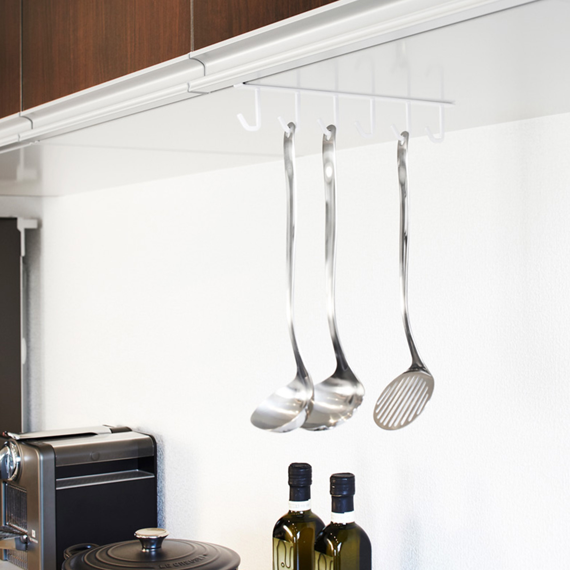 Rangez les ustensiles de cuisine sous les armoires ou les étagères pour gagner de la place