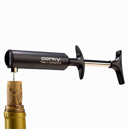 Un vieux classique "Corky" fabriqué en Suisse. Avec ce tire-bouchon, tous les bouchons peuvent être soulevés sans effort avec la pression de l'air de la bouteille.