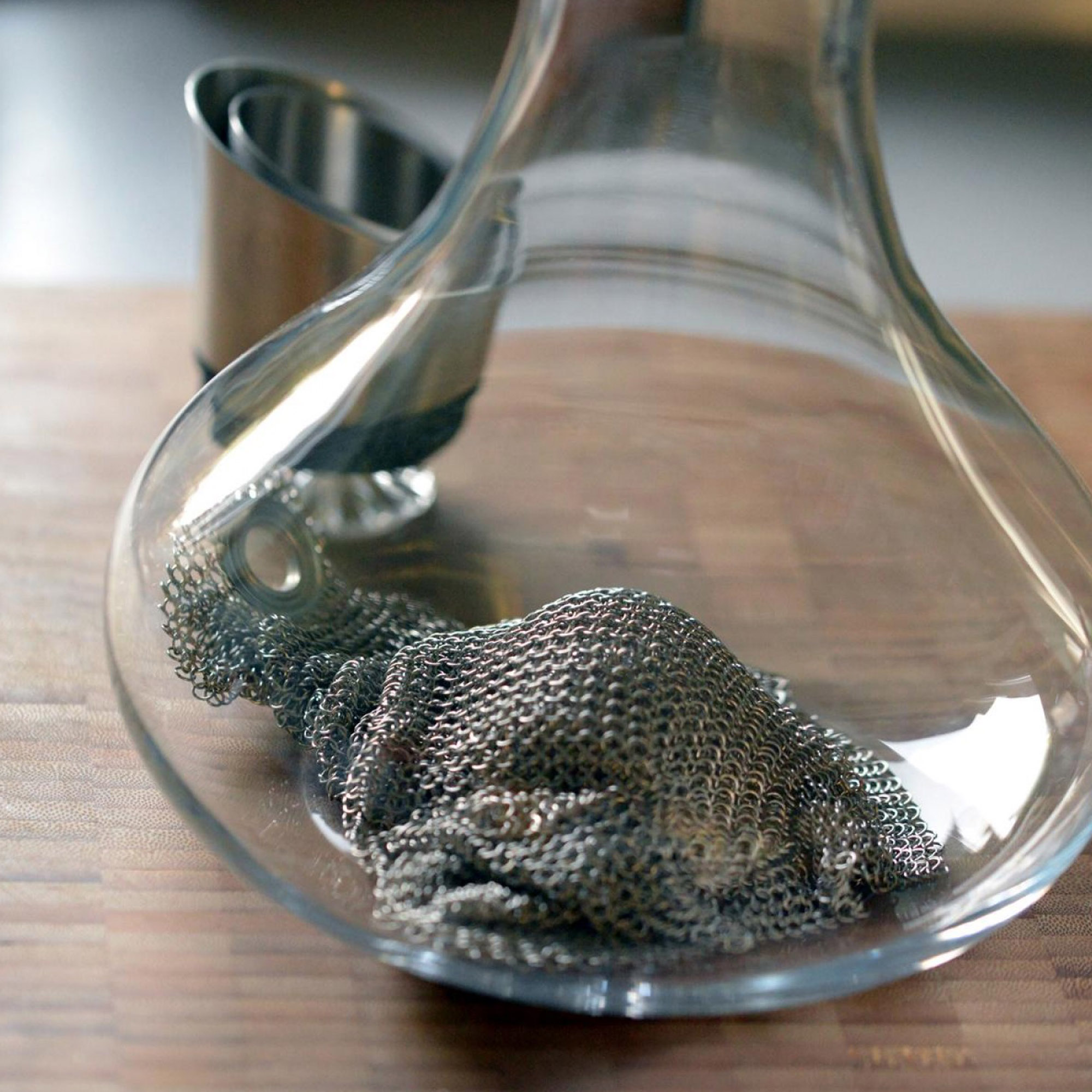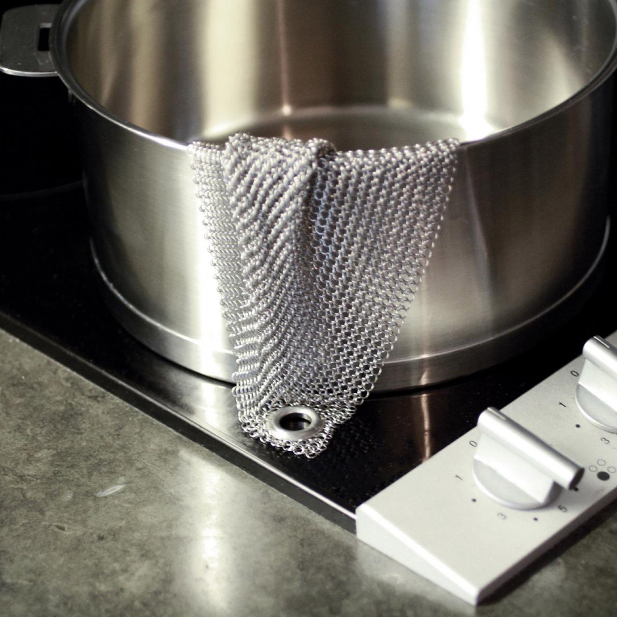 mono-softmesh est une maille de nettoyage en acier inoxydable. Il nettoie les casseroles, les poêles, les plaques à pâtisserie ou les grils brûlés des croûtes dures. Les anneaux tissés en acier inoxydable sont étonnamment délicats et flatteurs au toucher. Dans la carafe à carafe ou le vase, le mono-softmesh se nettoie avec un peu d'eau en le tournant et en le secouant simplement.