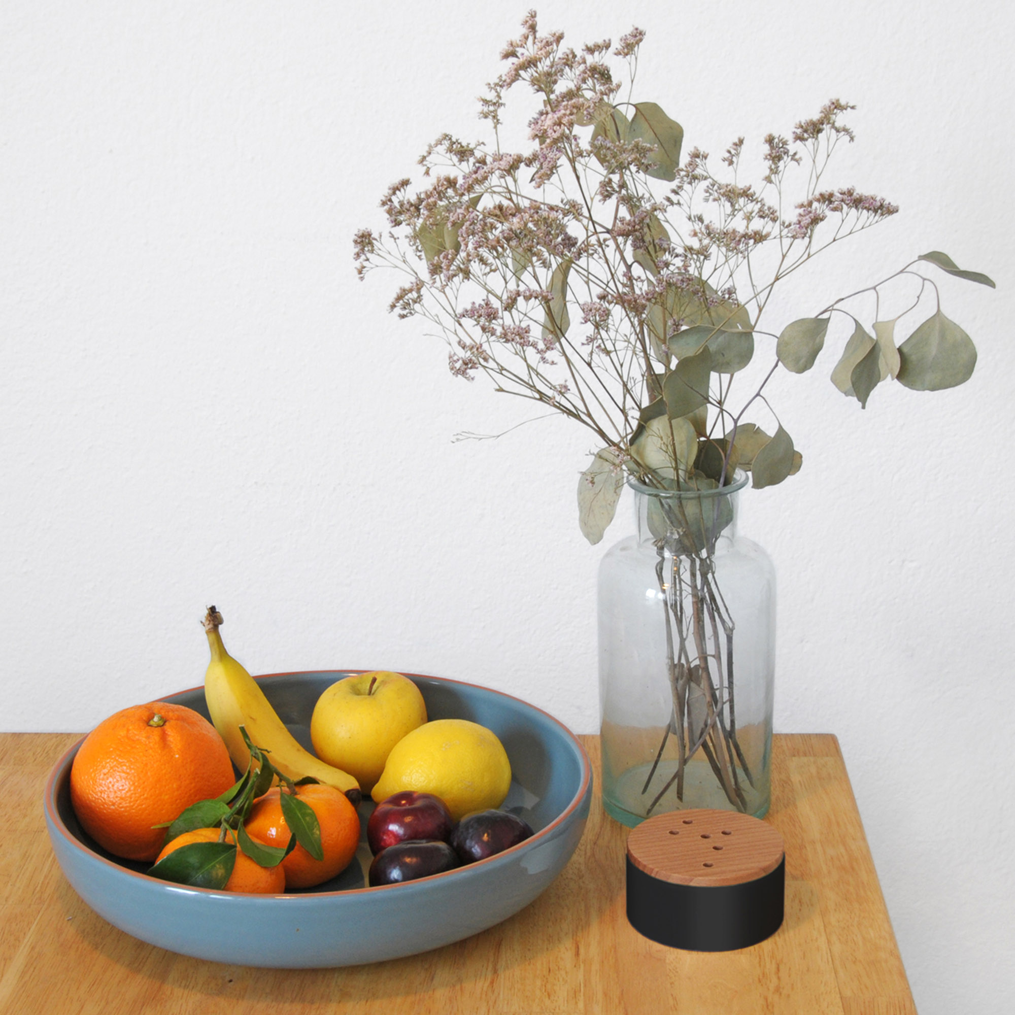 Les mélanges bien connus de remèdes ménagers éprouvés tels que le vinaigre, le liquide vaisselle et le vin (non compris) sont placés dans le bol en céramique, qui est fermé par un couvercle en bois. Le motif du trou dans le couvercle montre la constellation de la mouche - le "ciel des mouches" offre donc un lieu de repos réel mais aussi symbolique pour la peste estivale - et vous permet de profiter du barbecue la conscience tranquille.